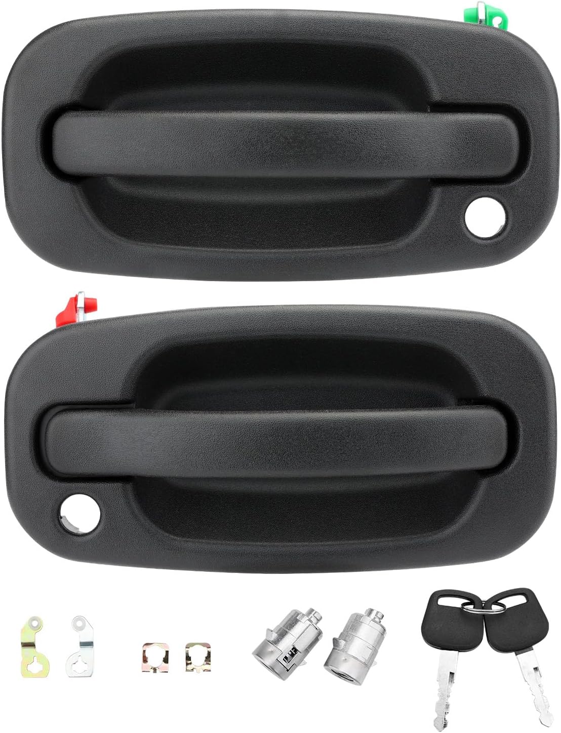 Packing List:1x Front Exterior Right Passenger Side Door Handle with Keyhole1x Front Exterior Left Driver Side Door Handle with Keyhole1x Rear Exterior Right Passenger Side Door Handle 1x Rear Exterior Left Driver Side Door Handle Condition: NewCompatible with:Chevrolet1999-2006 Chevrolet Silverado 15002005-2006 Chevrolet Silverado 1500 HD2001-2003 Chevrolet Silverado 1500 HD2007 Chevrolet Silverado 1500 Classic1999-2006 Chevrolet Silverado 25002001-2006 Chevrolet Silverado 2500 HD2004 Chevrolet Silverado 25002007 Chevrolet Silverado 2500 Classic2001-2006 Chevrolet Silverado 35002007 Chevrolet Silverado 3500 Classic2000-2006 Chevrolet Tahoe2000-2006 Chevrolet Suburban 15002000-2006 Chevrolet Suburban 25002002-2006 Chevrolet Avalanche 15002002-2006 Chevrolet Avalanche 2500GMC1999-2006 GMC Sierra 15002007 GMC Sierra 1500 Classic1999-2006 GMC Sierra 25002007 GMC Sierra 2500 Classic2001-2006 GMC Sierra 35002007 GMC Sierra 3500 Classic2000-2006 GMC Yukon2002-2005 GMC Yukon Denali2000-2006 GMC Yukon XL 15002000-2006 GMC Yukon XL 2500Cadillac2002-2006 Cadillac Escalade2003-2006 Cadillac Escalade ESV2002-2006 Cadillac Escalade EXT Precise Fit Part Numbers:15034985, 15034986, 15721571, 15721572, GM1520105, GM1521105, GM1310129, GM1311129, 77262, 77261, 80579, 80578