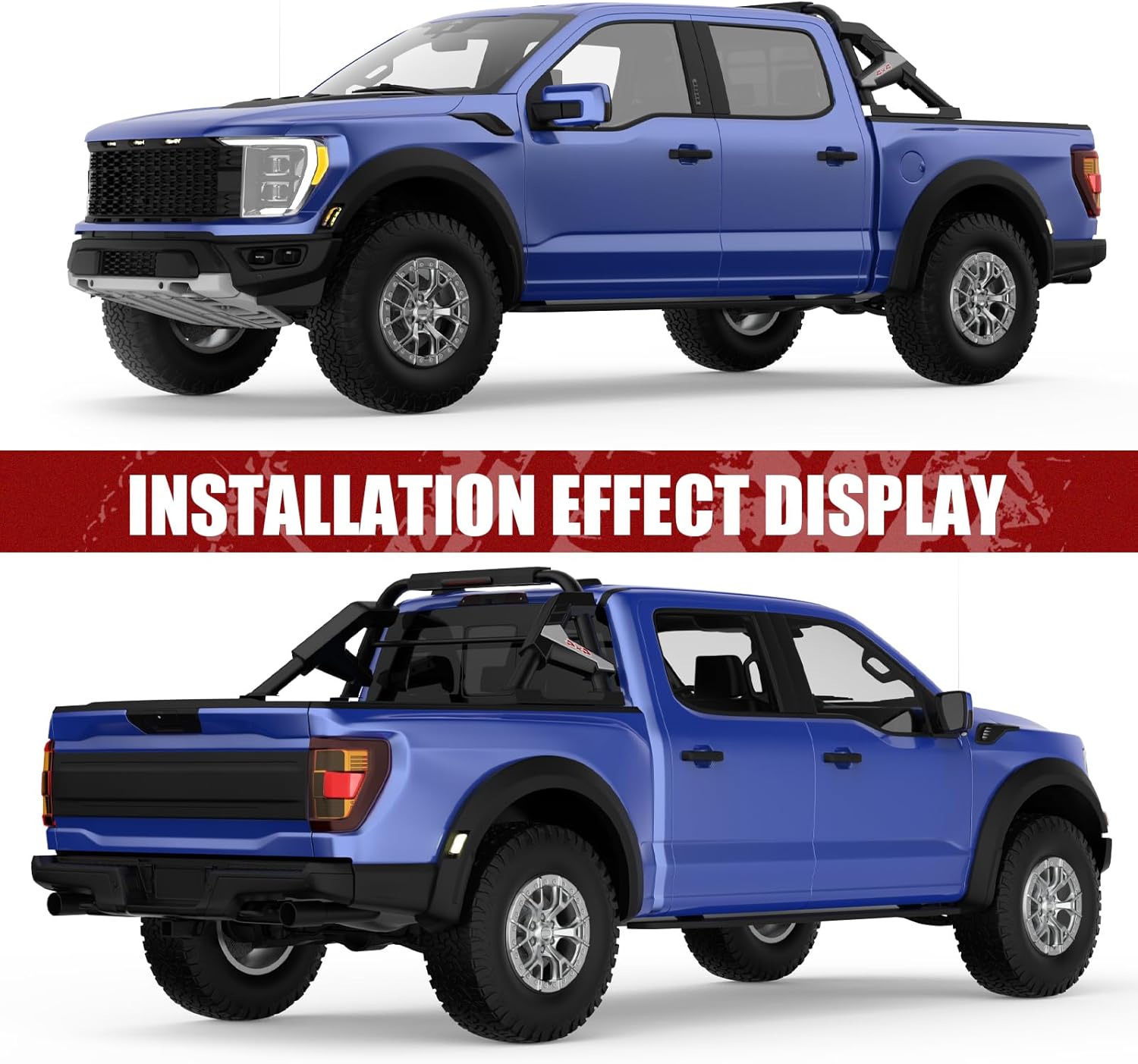 【Safety Protection Design】Adjustable roll bar is equipped with eye-catching red taillights, which significantly reduces safety hazards during nighttime driving. At the same time, it can effectively reduce the risk of heavy cargo falling from the compartment, providing extra safety for your trip 【Flexible Adjustable Width】Sport Bar for Truck has a flexible adjustable design, the installation width range can be easily adjusted to 59.06 inches to 66.69 inches to fit various sizes of trucks, making your installation experience more convenient