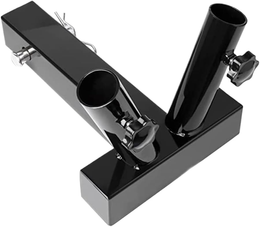 Innovative Road-Ready Design: Extended hitch flag pole holder with holes to fit different setups.Reinforced iron plates at key stress points improve strength and stability, reducing shake.Easy to Install: Slide hitch flag pole holder into a 2-inch hitch receiver, lock it in place with the included pin, insert the flagpole, and tighten the screws.Wide Compatibility: Fits flagpoles from 0.5 inch to 1.38 inches in diameter.Works with any vehicle equipped with a standard 2-inch hitch receiver, including trailers, pickups, campers, and cars.Construction: Made of heavy-duty metal with black powder coating to resist rust, scratches, and corrosion.Double-welded for strength on rough terrain.Two drain holes help remove rain and snow.Color: Black.Material: Metal.Package Contents: 1 x hitch mount dual flag pole holder kit.