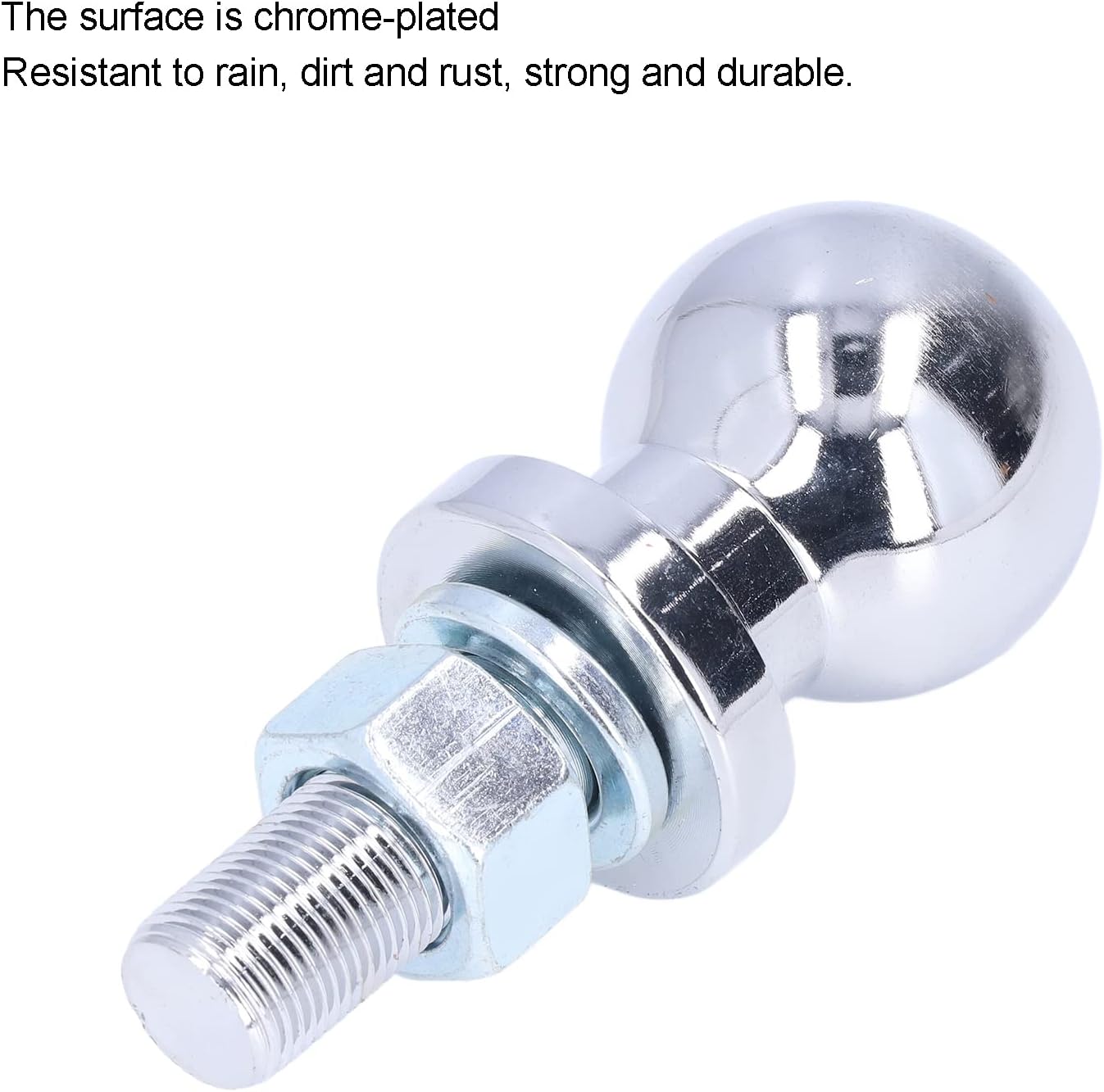 Description:This high-performance trailer hitch ball is crafted for durability and strength, with a remarkable weight-bearing capacity of up to 2000 pounds, making it ideal for heavy-duty towing. Constructed from hot-forged steel, this ball delivers dependable strength for stable and confident towing. Designed with a 1-7/8 inch diameter to fit most couplers and a 3/4 inch diameter shank with a 2-inch length, it provides a secure attachment to the trailer hitch ball mount. The chrome-plated finish resists rain, dirt, and oxidation, ensuring durability in various weather conditions. Easy to install, it adheres to strict quality standards, making setup convenient and dependable for all towing needs.Item Type: Trailer towing ballMaterial: Forged steel (with internal solid filling)Weight: 2000 poundsApplication: Establish a secure connection between your main vehicle and additional trailer. Very suitable for towing trailers, caravans, etc.Package List:1 x Tow Ball