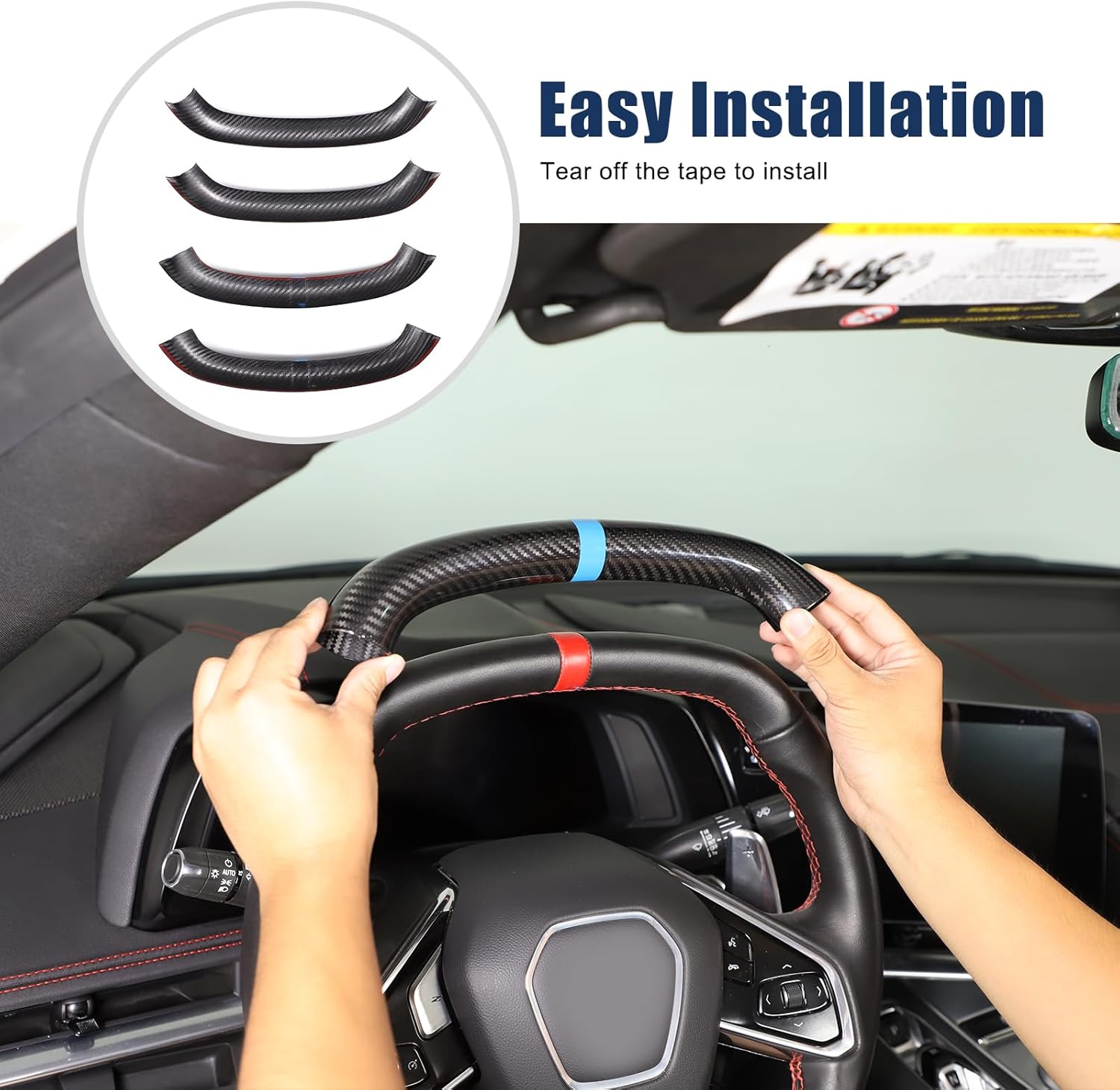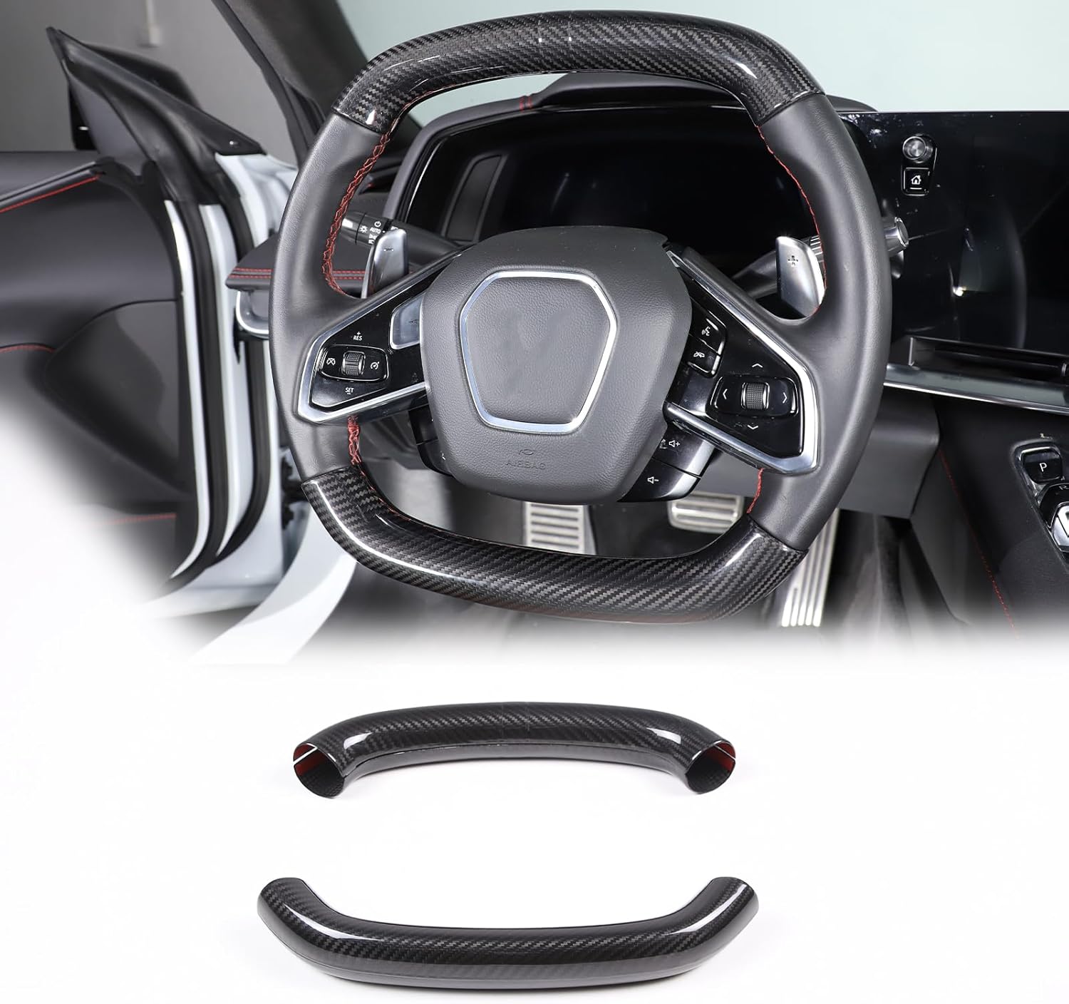 Decorate Your Steering Wheel and Protection it From Scratch.Please select the appropriate part cover trim according to your model and yearSteering Wheel Cover Trim Perfect fit, protect your car, also cover the original scratches and enhance the taste of the interior.Product features: Light weight, Durable, Scratch-resistant, Easy to install.Fitment: - Steering Wheel Circle Round Cover Compatible with Chevrolet Corvette C8 Stingray 2020 2021 2022 2023 2024 2025 2026.Material: Steering Wheel Circle Round Cover Made of Carbon Fiber.Steering Wheel Circle Round Cover 100% brand new and high quality guaranteed Easy to use and to operate at affordable prices.Bring the most beautiful colors to your interior.And can bring the protection of car interior.No need to punch holes, no screws, direct installation.Installation method:1.The back of the trim cover come with 3M tape.2.Wipe clean the around in advance, and keep dry and clean.3.Tear off the tape and press it tightly, and the installation can be completed quickly and easily.4.If the weather is cold. Please use the hair dryer(hot air blowing)in order to provide the best viscous.5.Please keep dry after been install at least 72 hours. Or it will easy to fall off.6. Any question about installation, please feel free contact us.Package Include:2 PCS X Steering Wheel Circle Round Cover.NOTES: Please check whether this item can fit on your car before purchasing.