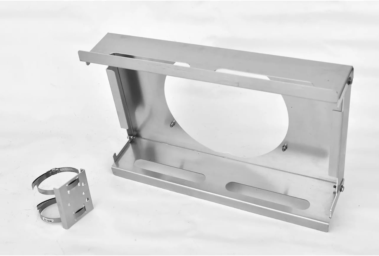 Enhance your Thermo King Tripac APU system with this professional-grade condenser mounting base. This silver-finished mounting solution comes complete with an integrated bottle holder and handle for added convenience. The robust construction features strategic mounting points and a thoughtfully designed frame that ensures stable and secure installation. The included bottle base provides easy access to essential fluids, while the ergonomic handle makes maintenance and adjustments straightforward. This mounting base is precision-engineered to fit Thermo King Tripac APU condensers, offering reliable support and optimal positioning for efficient operation. The durable metal construction stands up to demanding conditions, making it an essential component for proper APU system installation and maintenance. Perfect for fleet managers and mechanics looking for a reliable mounting solution that combines functionality with practical features.
