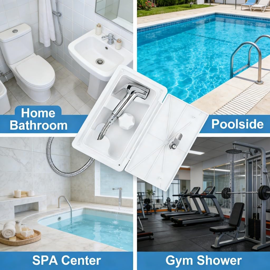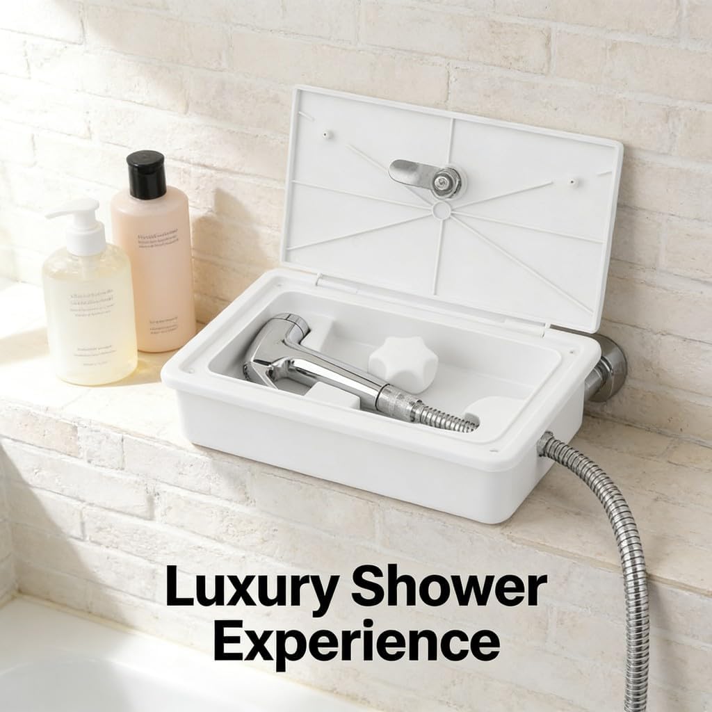 Condition: 100% Brand NewItem Type: Shower Box Material: Stainless Steel + ABSColor: As picture shownHole Size: Approx. 231 x 118mm/9.1 x 4.6inTotal Size: Approx. 267 x 157 x 107mm/10.5 x 6.2 x 4.2inPackage List:1 x RV Shower Box 4 x Mounting Screw 1 x Rubber Gasket 2 x Key 1 x Suction Cup Hook