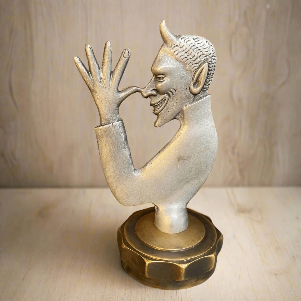 The Devil Radiator Cap Cast Iron With Solid Brass Cap is not only a functional addition to any vehicle, but also a great piece of decor to display. It boasts a height of 5.5" and a weight of 8 ounces, with a 2.4" inside diameter of the threaded radiator cap. Made of durable iron and featuring a brass cap that can easily be screwed on and off by hand, each cap is carefully crafted to have a unique antique and vintage distressed finish. This novelty reproduction of a vintage collectible is not only a great addition to the home, office, or man cave, but also functions as a paperweight and collectible with its elegant and professional appearance.