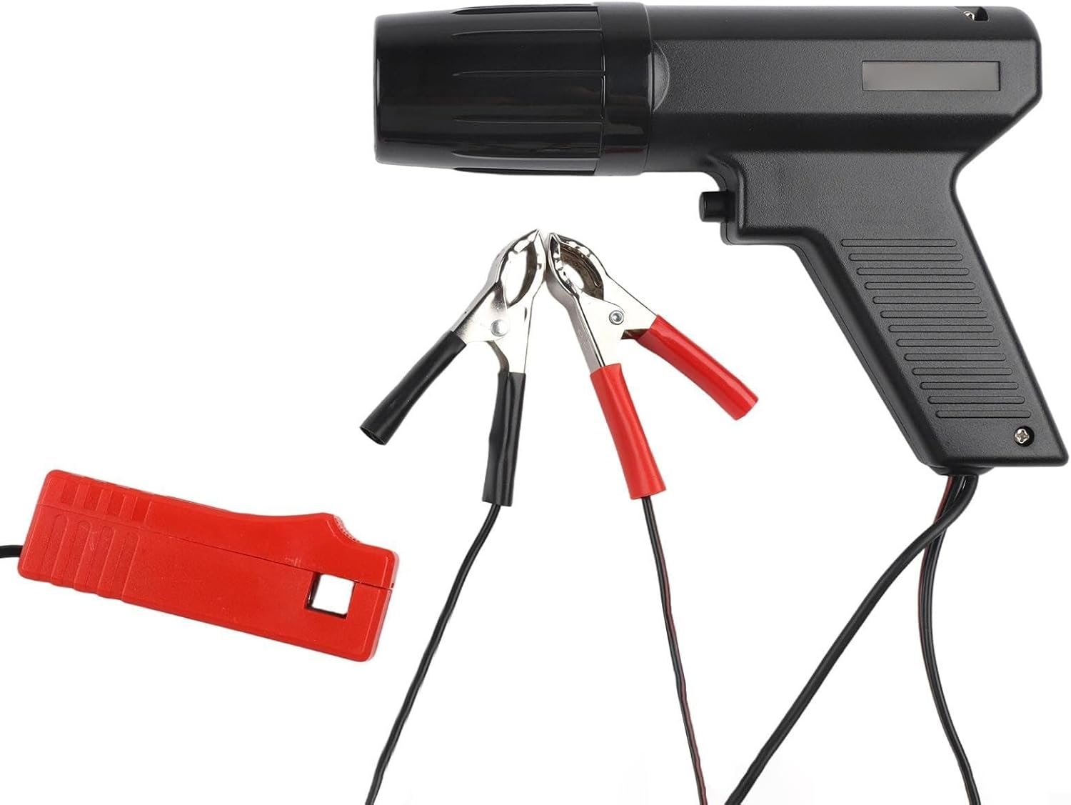 Features:Automotive for Ignition timing light for detecting timing changes due to for Ignition system faults or resetting the timing when a vehicle component is changed.12.0 V operating voltage, is quick to detect, easy to operate, ergonomically design, and can be held in one .The housing is of fine quality ABS material, and the handle is anti-slip and comfortable to grip, providing high electrical performance and a nice operating experience.High-luminosity xenon light beads, with high brightness, and large irradiation, you can also clearly observe the timing marked during the daytime.Red and black rubber handles for positive and negative power clips, strong biteforce, firm clamping, red for positive power clips, black for negative power clips.One-cylinder high voltage wire quick-induction clip, sliding cap type clip mouth for easy connection, safer and more reliable, raised stripes design for increased friction, arrows on the induction clip pointing in the direction of the sparking for proper use.The 1.36m extension cable makes it easy to use, with separate wire connections and positive and negative power clips that can be ripped apart to extend the ranges of movement.Insulated rubber, the wires are covered with insulating rubber to prevents accidental leaks/electrical shocks.This product can quickly detect for Ignition timing on engine flywheels or pulleys, automotive burst suppression control systems..The importance of the engine for Ignition timing light:Under normal wear and tear of an engine over a long period; Timing belts and pulleys were replaced regularly; Cylinder pressure drops and other conditions require for Ignition timing to be adjusted again. The timing of the for Ignition directly affects the normal operation of the engine and can leads to the engine not starting in serious situations. If the for Ignition is turned on too early, the engine will not start. If the for Ignition is turned on too late, the engine will wear out.Specifications:Name: for Ignition Timing LightMaterial: ABSInput voltage: 12vCable length: 1.36mVoltage clip length: 77mm / 3.03inInduction clip length: 100mm / 3.94inClamping ranges: 0-25mm / 0-0.98inInduction sizes: 10 * 10mm / 0.39 * 0.39inItem size: 185 * 130 * 40mm / 7.3 * 5.1 * 1.57inPart Name:Digital for Ignition Timing LightColor:BlackHigh Universality Fitment:YesOEM Number:Does not applyPackage content:1 * Ignition Timing Light1 * Guideline