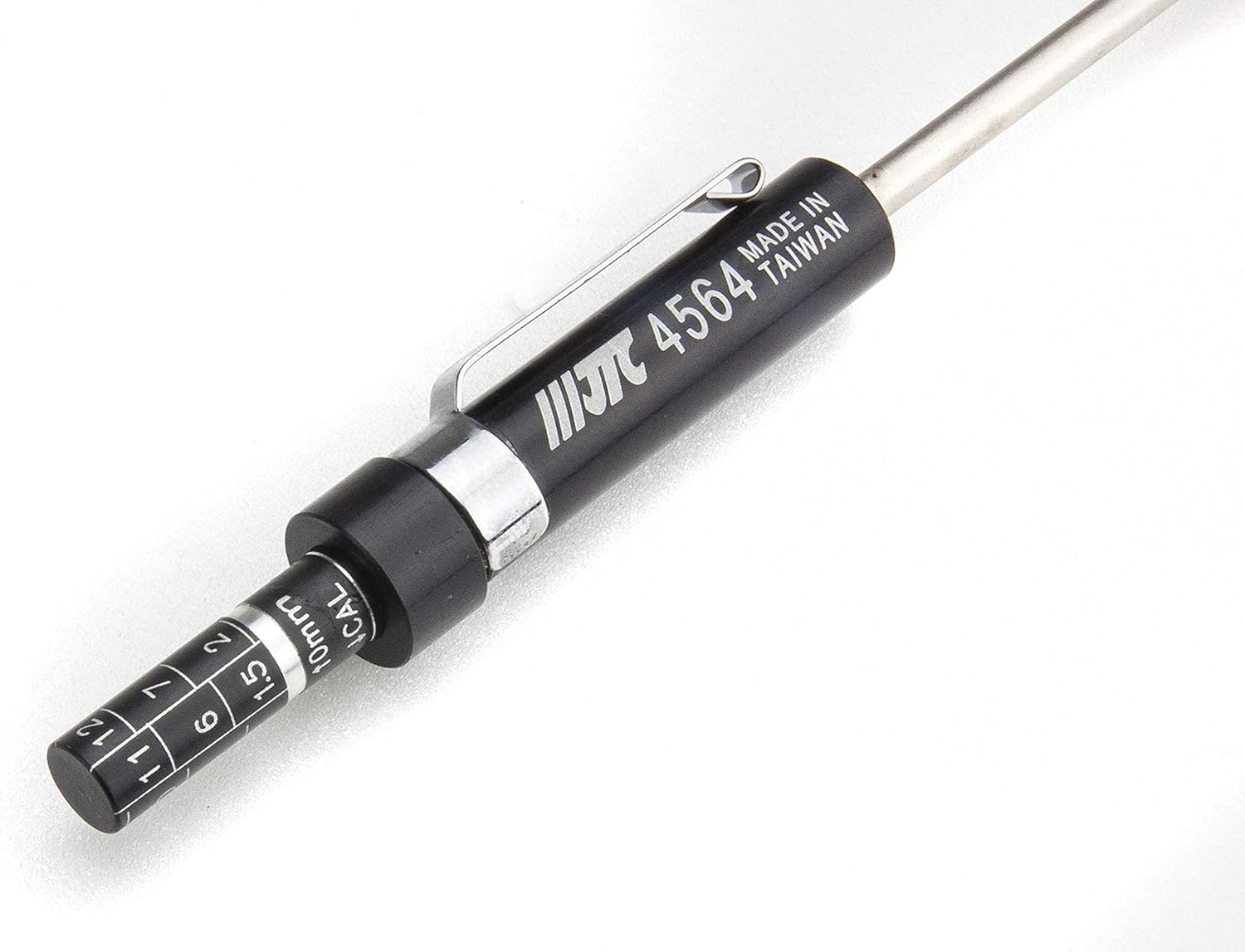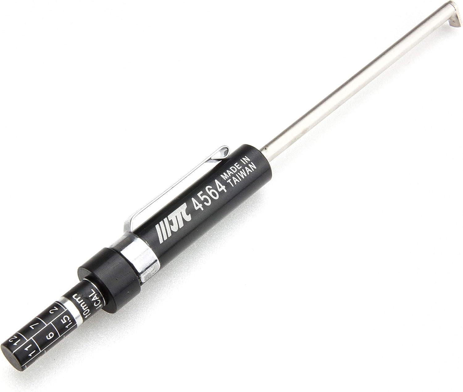 A time saving tool for measuring the brake pad lining on the vehicle without removing the wheel. Special slim design for measuring the distance between the lower side of the backing plate and brake disc. Designed for both internal and external brake pads, features a 1.5mm and calibration check marking. Capable for 6mm backing plate (class IV, V)