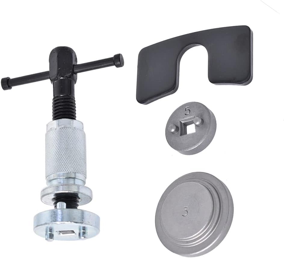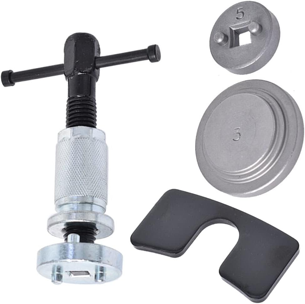 Enables retraction of piston as fitted to Coll~ ette type brake callipers allowing new brake pads to be installed.Brake piston rewind tool.Adopted with vanadium steel material, higher hardness and not easy to deformFits for most European and Japanese cars with right handed thread.Operated with T-handle or 3/8" (19 mm) wrenchThe Distance of two pins is 22mm.The Diameter of the pins head is 6mm.Includes:1x Pressure Plate2x Adapter1x Rotary Device (right hand thread)Note:The real color of the item may be slightly different from the pictures shown on website caused by many factors such as brightness of your monitor and light brightness.