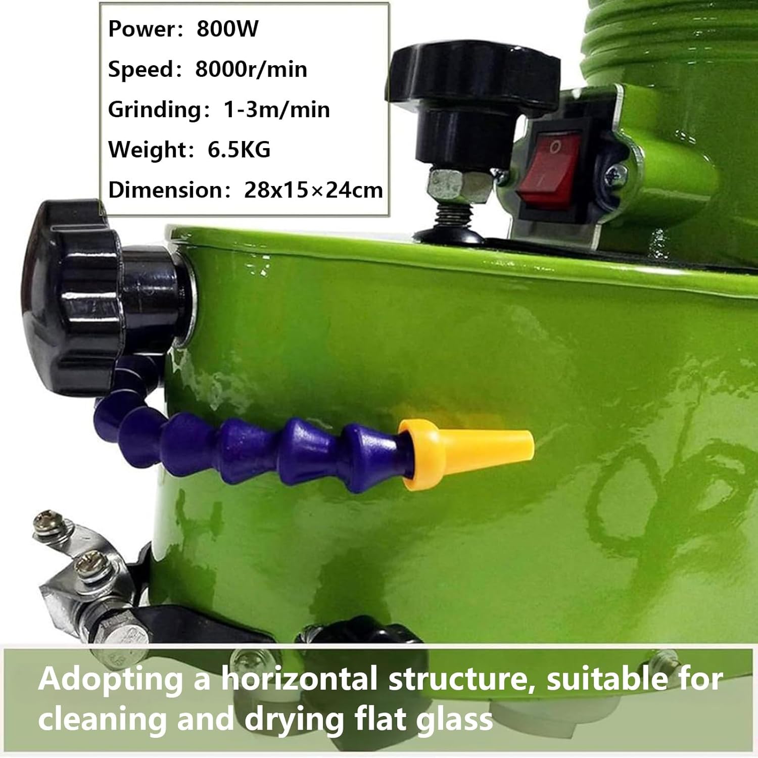 Struggling with polishing glass and stone? This electric glass edge polisher is choice!Portable and easy to use,it comes with a variety of diamond wheels and requires no accessories.Its powerful 800w motor is quiet and safe, while its 8000RPM speed delivers a professional polish. It features a three-step quick setup, water cooling, and compatibility with a wide range of materials, making polishing a breeze!Features:- Diamond grinding wheel + 8000RPM- 800W powerful power: fast grinding, 1-3 meters per minute- Cool, quiet, and safe: axial cooling + insulated components- 3 steps, 10 seconds: secure → level → lock → grind- Suitable for grinding glass, stone, tile, marble, and ceramic (6-12 mm thickness)Parameters:Name: Glass Edge Grinding MachineMaterial: Stainless Steel/Aluminum AlloyPower: 800WMain Motor Speed: 8000 RPMGrinding Speed: 1-3 meters per minutePackaging Weight: 7 kgDimensions: 28 x 15 x 24 cmGrinding wheel sizes: Double-edged 100*22*6mm; Double-edged 100*22*8mm; Double-edged 100*22*10mm; Double-edged 100*22*12mm; BD 100*22*15mmPackage Contents:1 edge grinder1 circular or right-angle grinding wheel1 polishing wheelCustomer Service:If you have any questions about this product, please email us and we will answer your questions as soon as possible.
