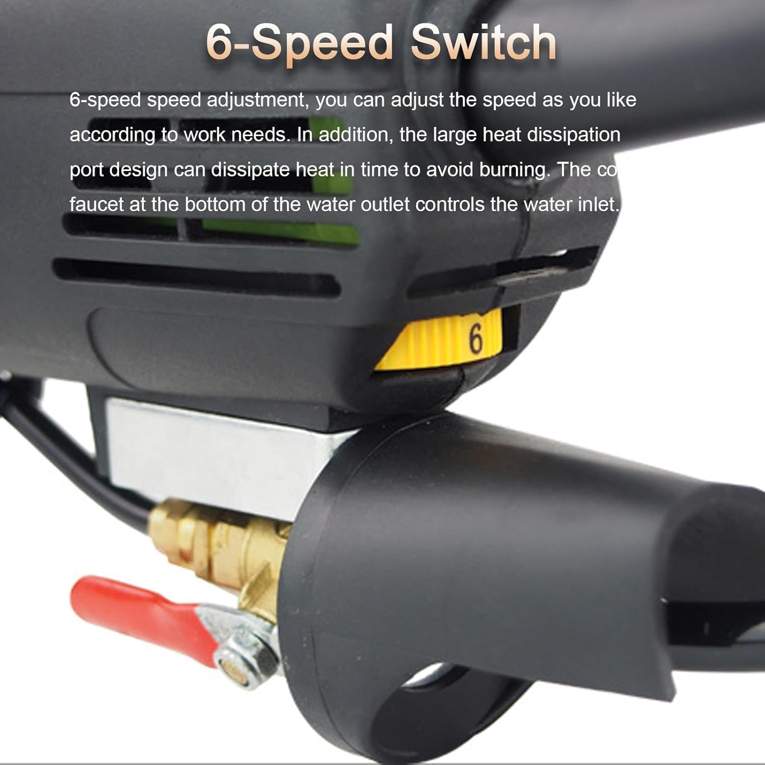 Why choose our wet polisher?1. All-copper wire high temperature resistant motor, optimize the motor performance curve under rated load, continuously output surging power, efficient polishing.2. High-precision two-stage reducer, high strength and wear resistance, longer service life; metal gearbox is made of aluminum casting, and it will not wear out even after long-term work.3. High-quality carbon brushes are used for longer service life.4. Equipped with dust cover, truly dust-free work, giving you a healthy and safe working environment; tail heat dissipation design to increase service life.Product features:1. Two-stage transmission, efficient grinding, especially suitable for high-load work;2. Equipped with U-shaped auxiliary handle, auxiliary work, more convenient to use.3. 6-speed adjustment, adjust according to work needs. In addition, an extra-large heat dissipation port is designed to dissipate heat in time to avoid burning the machine.4. Equipped with leakage protector, safer to use and more reliable product quality.Description:Name: Water-injected stone polisherPower: 800WVoltage: 230-240V/120VFrequency: 50Hz/60HzSpeed: 1000-4000rpmMaximum grinding disc diameter: 125mmWeight: 3.5kgPackage size: 35.5x17.5x14cm