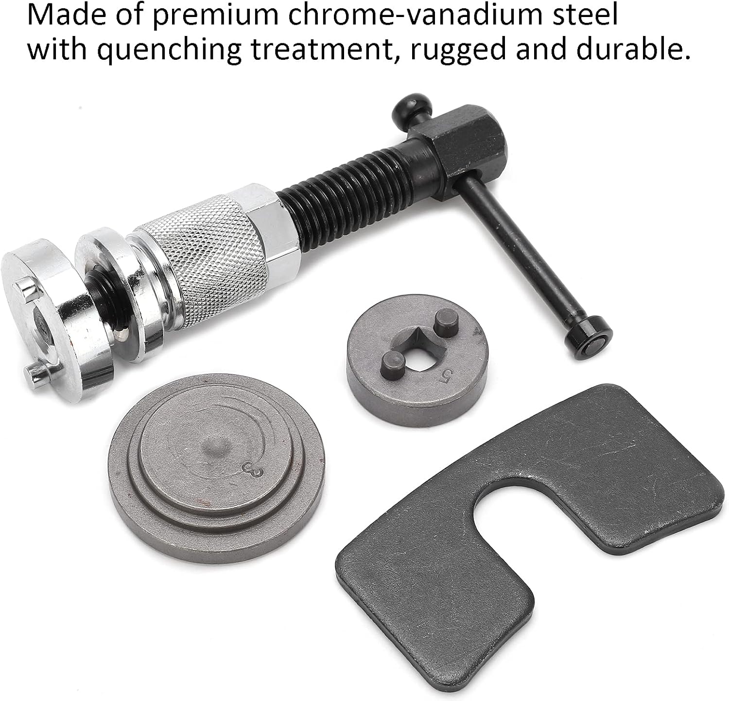 [PRECISE MACHINING] Ensures smooth operation with 4 teeth on each side of the chuck for a wide range of applications.[PREMIUM CHROME-VANADIUM STEEL] With quenching treatment, this tool is rugged, durable, and long-lasting.[ELECTROPLATED SURFACE] Stylish, generous finish that effectively prevents rust, ensuring a longer lifespan.[COMPACT AND PORTABLE] Lightweight for easy carrying without taking up much space, ideal for on-the-go repairs.[STRICTLY MEETS STANDARDS] Manufactured to meet specifications, this tool follows strict quality control for reliability.Spec:Item Type: Disc Brake Piston Spreader KitMaterial: Chrome-Vanadium SteelPurpose: Auto disc brake adjustmentApplication: UniversalPackage List:1 x Disc Brake Piston Spreader Kit (5pcs parts)Note: