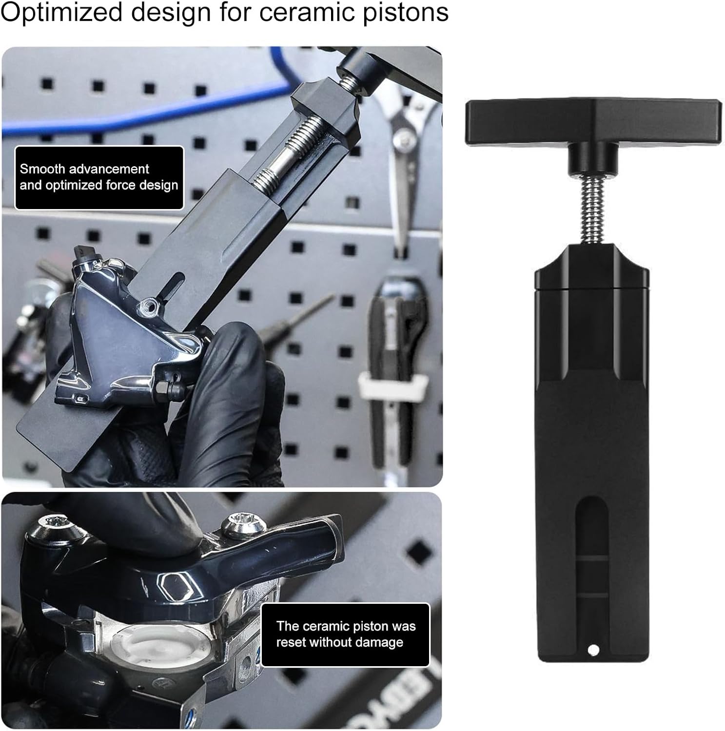 Built to assist mechanics with rear brake repairs, this brake tool features an advanced compressor and clamp structure for stability. Its ratchet capability ensures effortless adjustments, complemented by a spreader that aids alignment. Whether working automotive or bike systems, this tool proves for effective and straightforward maintenance solutions.Product AttributesProduct Name: Brake Piston Compressor ToolProduct size: about 17.8x8cm/7.01x3.15 inchesPiston Tool Reset: 7mm-12.5mmMaterial: 7075 Aluminum AlloyWeight: Approximately 220g (including packaging)Applications: Easily reset the piston when replacing brake pads; repair/maintain hydraulic disc brakes to ensure smooth piston operations; prevent ceramic piston cracking and improve repair safety; reset the piston before bleeding (deflating) the disc brake system.Applicable: Suitable for mainstream brakes (most calipers with an open top are compatible)Product ListBrake Piston Compressor Tool *1Notes: 1. Due to the lighting effects and photographing angles, the product has a color difference; please understand.2. Due to manual measurement, there is a tolerance in the product size.