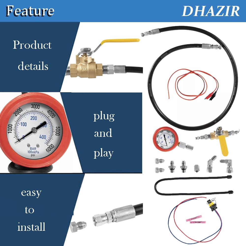 Features:- Application: The test gauge tool is compatible with 1994-2007 Ford Powerstroke 6.0L & 7.3L Diesel engines, fit for 1994-2007 VT365 & T444E Diesel engines, fit for 1997-2006 3126B, 3126E, and C7 Diesel engines.- Function: Dual purpose test tool, monitoring system performance with the analog gauge or testing air leak. Check the leak in the engine's high-pressure oil system that runs fuel injectors, and find the precise source of leakage.- Easy To Use: For air leak testing, simply supply shop air pressure through the ICP sensor port or available plugged oil rail port, and connect 12V to the IPR. No need to remove the IPR valve, and no adapter needed to screw in place of the IPR.- Specification: 6000 PSI liquid-filled gauge; 5800 PSI hydraulic hose; 23200 PSI minimum burst pressure rating. The package includes IPR pigtail, jumper wires, high pressure hose, adapters, etc. (Total 12 pieces)- Material: The oil leak test gauge tool kit is made of copper, steel and rubber, solid and durable.Fitment:-Fit For 1994-2007 Ford Powerstroke 6.0L & 7.3L Diesel engines-Fit For 1994-2007 VT365 & T444E Diesel engines-Fit For 1997-2006 3126B, 3126E, and C7 Diesel enginesPackage Including:1x Test Tool High Pressure & Air Leak Test Tool Kit