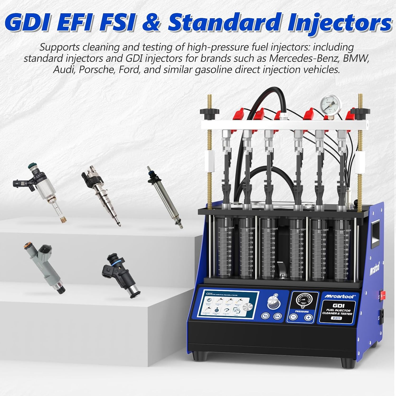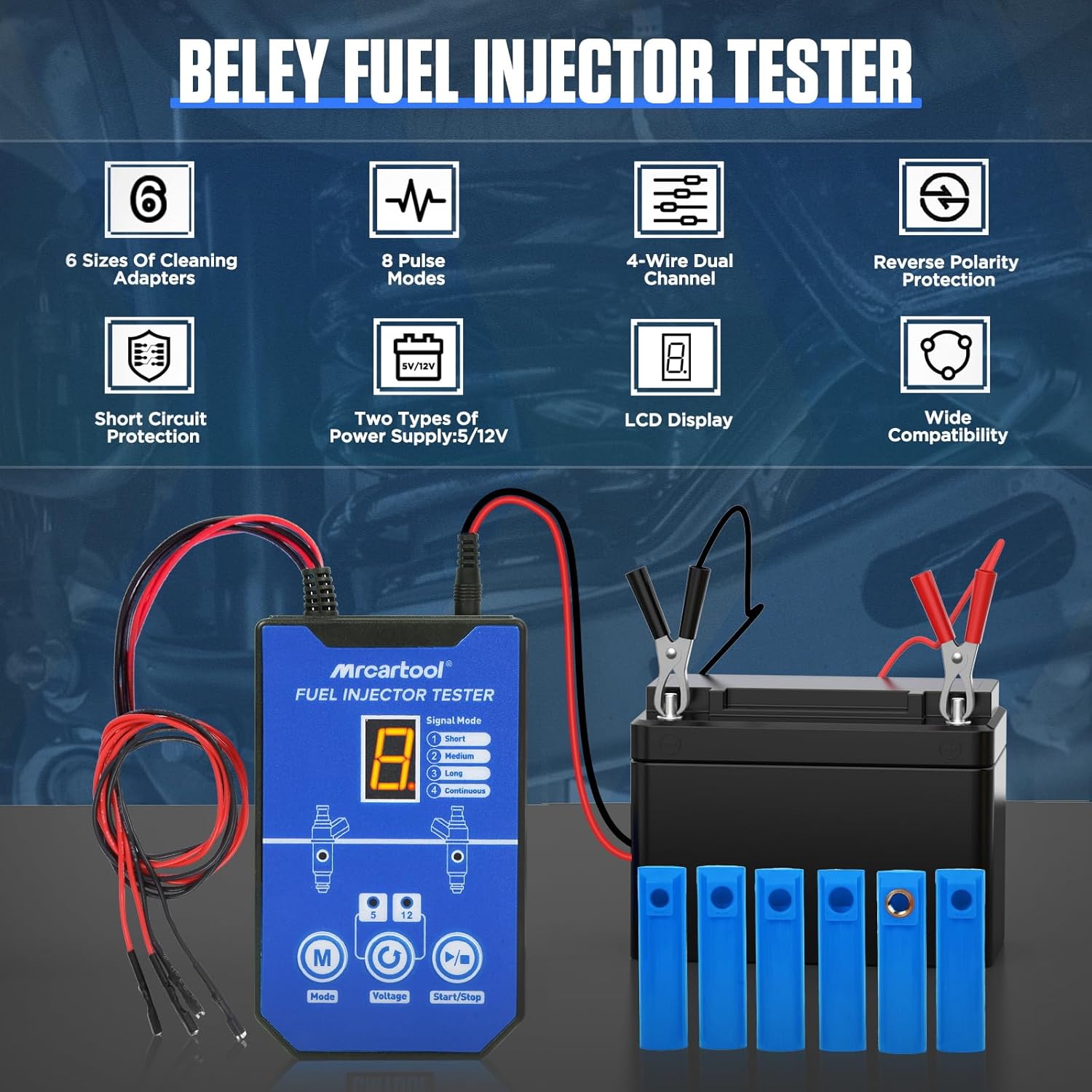 1. BELEY V311 Intelligent Ultrasonic Cleaner & Tester Your Advanced Bench-Top Performance Lab. 🖥️ 5-Inch HD Color Display & Knob Control: Operate with precision using the intuitive rotary knob. The large, backlit color screen ensures perfect parameter setting and clear data monitoring under any shop lighting. 🔥 Heated Ultrasonic Deep Cleaning: The integrated heating system actively warms the cleaning solution, dramatically increasing its chemical efficacy to dissolve and remove stubborn carbon deposits that cold cleaning leaves behind. ⚙️ Comprehensive Testing Suite: Features a 1600ml ultrasonic tank. Beyond cleaning, it performs critical tests: injection uniformity, pressure seal (leak-down), and spray atomization analysis, all observable via a built-in tank light. 🔌 Multi-Voltage for Modern Engines: Supports 12V, 70V, and 120V outputs, making it perfectly suited for both traditional port injectors and high-pressure direct injection (GDI/FSI) systems from European and Asian manufacturers. 🌐 8-Language Interface: A truly global tool. Switch the interface to your preferred language for effortless operation, minimizing training time for any technician. 2. Professional Handheld Fuel Injector Pulse Tester & Cleaner Your Rugged, On-Vehicle Diagnostic Powerhouse. 🔧 6 Universal Cleaning Adapters: Includes a comprehensive set of adapters for 12V and below injectors, covering MPFI, SPFI, TBI, L-JET, Motorcycle, FSI, Coil-Over Direct Injector, and more. Ready for immediate use on a vast array of vehicles. 📟 8 Pulse Modes & LCD Display: Configure tests with precision using 4 pulse signal modes (Short/Medium/Long/Continuous) combined with 2 voltage levels (12V/5V). The LCD and flashing indicator lamps provide clear operational feedback. 🛡️ Built-In Safety Protections: Features reverse polarity protection and output short circuit protection, safeguarding both the tool and the vehicle's electrical system during use. The status ind