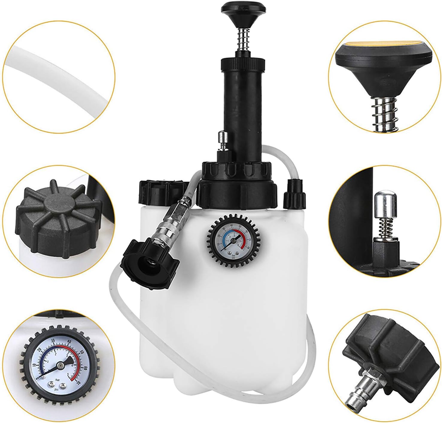 Condition: 100% Brand NewItem Type: Brake Clutch BleederMaterial: PE PlasticColor: WhiteBrake Bleeder Capacity: 3LBottle Capacity: 1LWorking Pressure: 10-30 PSI (0.7-2.0 bar)Maximum Pressure: 6 bar / 80 psiPackage List:1 x Brake Clutch Bleeder Set1 x Accessory Pack1 x ManualNote:Please note that the new type and old type of this product will be sent randomly, and make sure you will not mind before ordering.