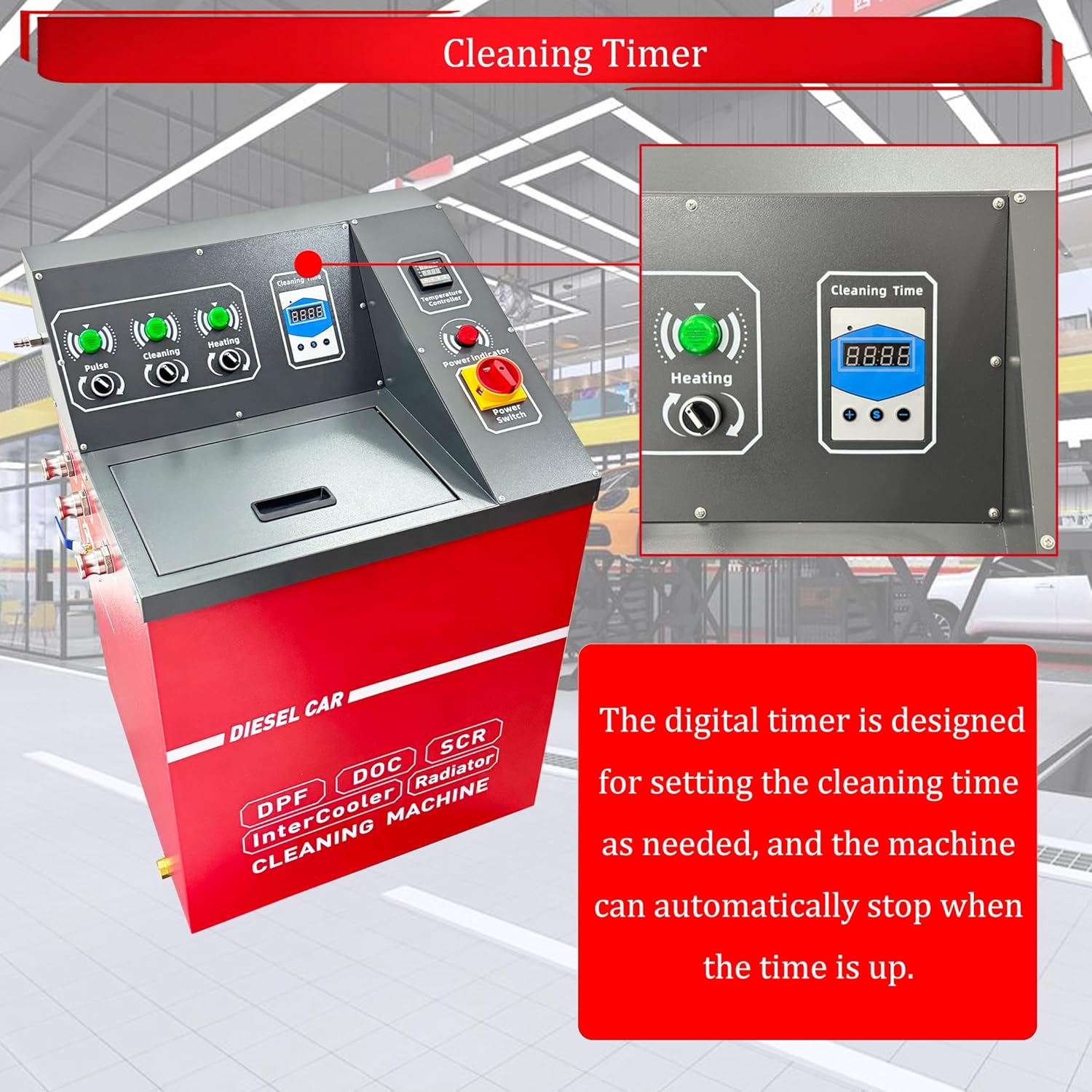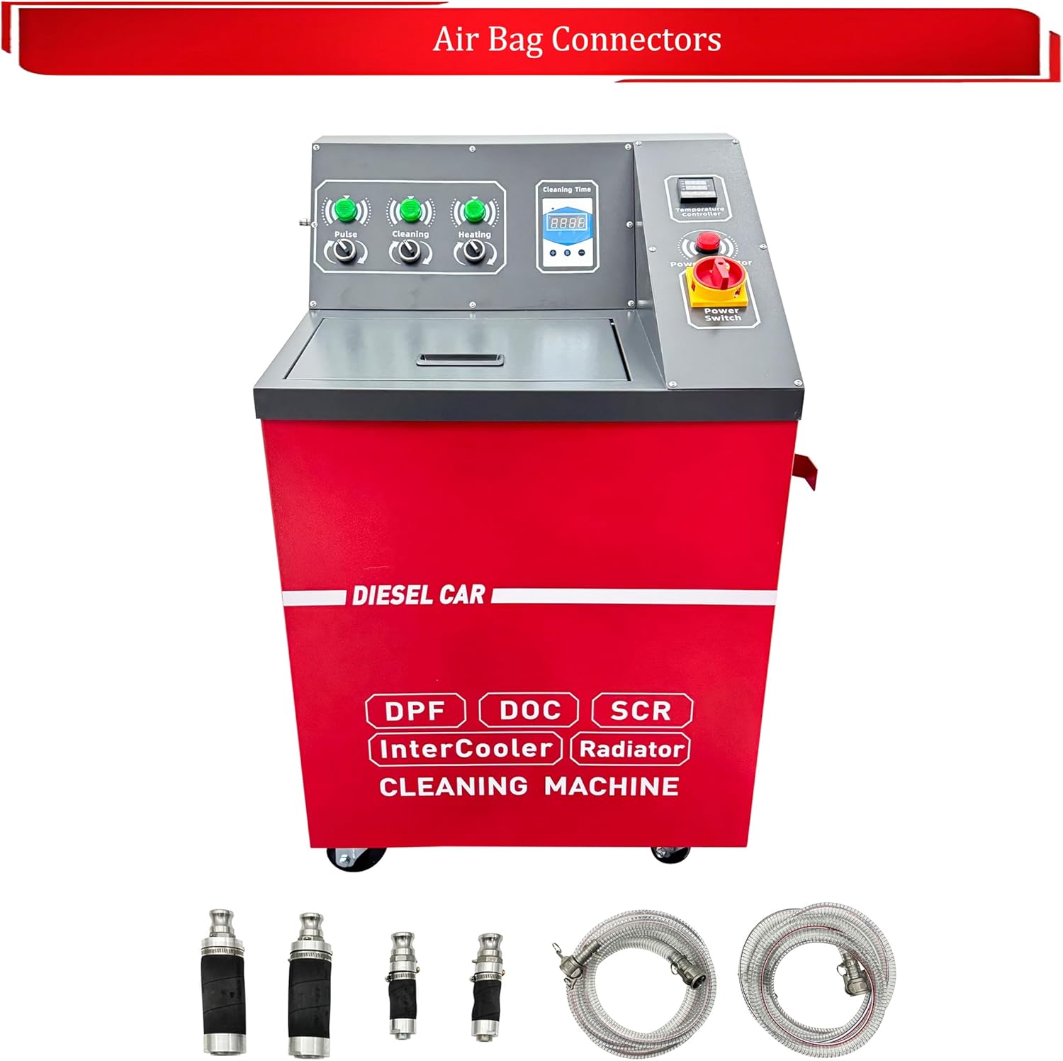 The vehicle after-treatment system cleaning machine is a professional cleaning device for vehicle exhaust system treatment. It can conduct comprehensive and effective cleaning of substances such as urea crystals, carbon soot particles and ash deposits in the exhaust after-treatment system, restore all components to the optimal working condition, eliminate faults, improve the power output, reduce emissions, protect components and save the cost. Additionally, the system can be used to clean water tanks, intercoolers, urea tanks, mufflers and automotive three-way catalytic converters. Product Parameters Working Voltage : 220V Single-phase Heating Power : 3000W Motor Power : 550W Flow Rate : 38L/min (10 US Gal/min) Suction Lift/Head : 8m (26ft) / 18-25m (59-82ft) Water Tank Capacity : 80L (21.1 US Gal) Machine Size : 70*55*96cm (27.5*21.6*37.8 inches) Net Weight : 63kg (139LBs)