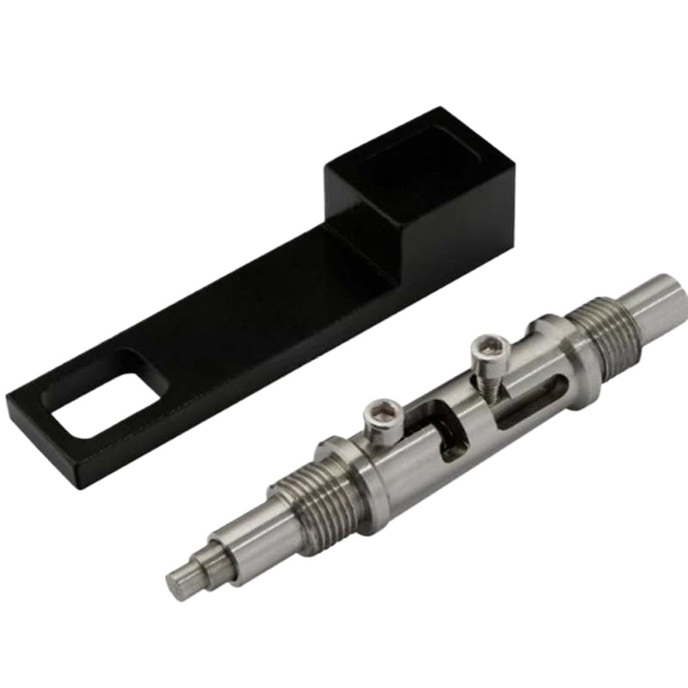 This engine timing alignment pin is designed for use with R1200GS, R1250GS, and R1200RT motorcycles.Constructed from stainless steel, the pin is built for and long-term use.It assists in locating and locking the dead center (TDC) or bottom dead center (BDC) position to support accurate camshaft and crankshaft alignment during engine maintenance.The tool measures 120mm in length and provides precise fitment for performance.Its design allows for straightforward installation to aid efficient valve adjustments and engine service.Package includes one alignment pin set.Color: Black and Silver.