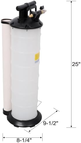 Product Features: Equipped with a 7L capacity, this oil pump extractor delivers rapid and versatile fluid removal for engines, seamlessly extracting engine oil, brake fluid, transmission fluid, and other automotive liquids from cars, motorcycles, boats, and other motorized vehicles. Its user-friendly design makes it the perfect companion for DIY enthusiasts, simplifying routine maintenance tasks while ensuring precision and efficiency across various applications. Our fluid extractor pump offers pneumatic and manual operation modes to suit diverse maintenance needs. This dual-function design ensures seamless adaptation to any workflow—whether you prioritize speed in a busy workshop or prefer hassle-free manual control for on-the-go repairs. Pneumatic Mode: Leverages compressed air for high-speed fluid extraction, drastically boosting work efficiency in professional settings or time-sensitive projects. Manual Mode: Eliminates the need for additional equipment, providing a straightforward, gear-free operation that’s ideal for remote locations, DIY tasks, or situations where simplicity and portability are key. Whether you need to drain engine oil, gear oil, power steering fluid, or brake fluid, our oil pump extractor is your versatile solution for extracting all major automotive and machinery fluids. From cars, motorcycles, and yachts to lawnmowers and tractors, this all-in-one tool adapts to virtually any vehicle or equipment. Its quick-acting design ensures effortless fluid removal, making it the essential gadget for routine maintenance across all your motorized assets. Engineered from high-quality polypropylene, this manual oil extractor combines exceptional durability with superior corrosion resistance. The rugged polypropylene housing withstands harsh automotive fluids and prolonged use, making it a reliable choice for both professional workshops and DIY garages. Its chemical-resistant design ensures consistent performance over time, reducing maintenance costs and delivering lasting value. Product Dimensions Assembled Length (inches): 8.20 Assembled Width (inches): 9.50 Assembled Height (inches): 25.00 Product Weight (lbs): 5.50 Packaging Dimensions Length (inches): 9.40 Width (inches): 9.40 Height (inches): 27.00 Weight (lbs): 7.70