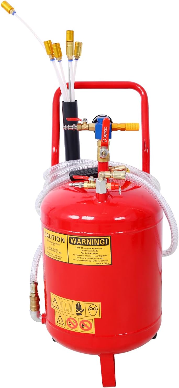 Introducing the solution for efficient and waste oil removal – our Pneumatic Oil Extractor. This powerful portable unit is designed to simplify both garage and professional automotive fluid management, making it ideal for mechanics, DIY enthusiasts, and workshops alike. Ample Capacity for Effortless Extraction Our extractor boasts a generous 24-liter steel oil tank, minimizing the need for frequent recycling and ensuring you can process larger oil quantities without interruption. Versatile Suction for Complete Removal Equipped with six suction probes, this extractor reaches every corner of your reservoir, guaranteeing complete extraction of motor oil and other compatible fluids. Safety First, Every Time Prioritizing your safety, our pneumatic oil extractor features an integrated safety valve that prevents overpressure situations. Coupled with our closed-loop system, it minimizes the risk of contact with waste oil or hazardous liquids, ensuring a worry-free operation. Designed for Ease of Use and Maneuverability We've designed this extractor with your convenience in mind. From its oil pipe and visible level indicator to its user-friendly portable handle, every detail facilitates a smooth extraction process. Moreover, the 5.9 inch rear wheels enhance portability and maneuverability, allowing effortless transport around your workspace. Extensive Applications Across Automotive Maintenance This air-powered oil evacuator proves invaluable for collecting waste oils and other compatible non-corrosive fluids in various automotive settings. Whether in your garage, repair shop, lifting platforms, or assembly pits, our extractor delivers reliable performance for diverse automotive maintenance tasks.