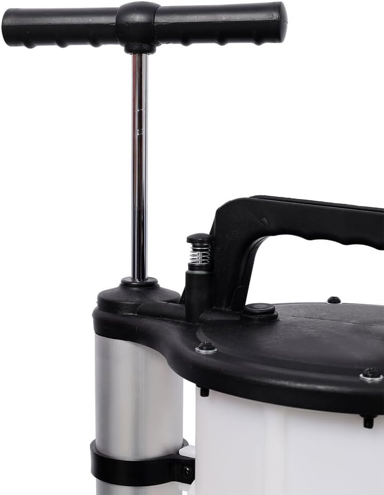 SpecificationsColor: White + BlackMaterial: Polypropylene PlasticCapacity: 9 Liters / 2.4 GallonsOperation: Manual + Pneumatic (air compressor support)Dimensions: 10"L × 12.5"W × 24.8"HProduct Weight: 6.7 lbsPackage Contents1 × 9L Oil Extractor Pump1 × Flexible Suction Hose1 × Manual Pump Handle1 × Pneumatic Air Inlet Fitting1 × User Manual