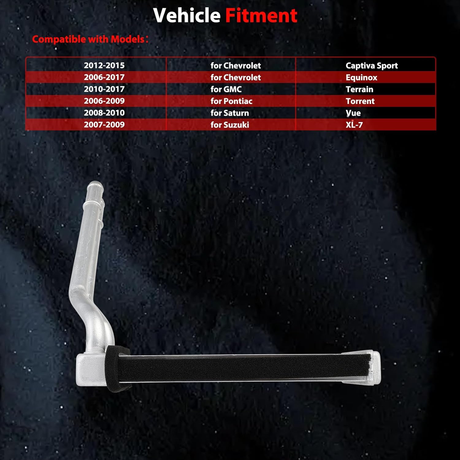 APPLICATIONS:Compatible for 2012-2015 for Chevrolet for Captiva Sport LS2012-2015 for Chevrolet for Captiva Sport LT2012-2015 for Chevrolet for Captiva Sport LTZ2015-2017 for Chevrolet for Equinox L2006-2017 for Chevrolet for Equinox LS2006-2017 for Chevrolet for Equinox LT2008-2016 for Chevrolet for Equinox LTZ2017 for Chevrolet for Equinox Premier2008-2009 for Chevrolet for Equinox Sport2013-2017 for GMC for Terrain Denali2015-2017 for GMC for Terrain SL2010-2017 for GMC for Terrain SLE2010-2017 for GMC for Terrain SLT2006-2009 for Pontiac for Torrent Base2008 for Pontiac for Torrent GT2008-2009 for Pontiac for Torrent GXP2006-2008 for Pontiac for Torrent LS2006-2008 for Pontiac for Torrent LT2007 for Pontiac for Torrent Sport2008 for Saturn for Vue Green Line2009 for Saturn for Vue Hybrid2008-2009 for Saturn for Vue Red Line2008-2010 for Saturn for Vue XE2008-2010 for Saturn for Vue XR2007-2008 for Suzuki for XL-7 Base2007-2008 for Suzuki for XL-7 GL2007-2009 for Suzuki for XL-7 GLS2008-2009 for Suzuki for XL-7 JLX2008 for Suzuki for XL-7 JX2007-2009 for Suzuki for XL-7 Limited2007-2009 for Suzuki for XL-7 Luxury2008-2009 for Suzuki for XL-7 PremiumAluminum ConstructionPACKAGE INCLUDED:1 PCS Heater CoreOEM: 99307 Heater core