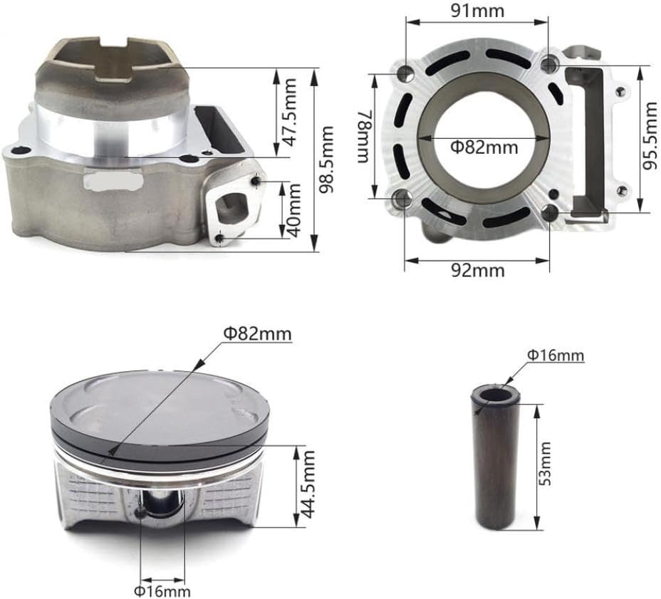 Motorcycle Accessories ZS182MN 82mm Air Cylinder Block Piston Pin Ring Gasket Pad Kit For NC300S Double Camshaft Engine This kit includes an 82mm cylinder block, piston, wrist pin, ring set, gasket set, and pad components designed for use with the NC300S double camshaft engine.The parts are engineered to match specifications for performance and compatibility with standard rebuild procedures.Suitable for engine overhauls and repairs, the assembly supports proper compression and smooth when installed correctly.All components are supplied as a complete set to facilitate efficient reassembly of the engine's core internal parts. Compatibility Disclaimer: This is an aftermarket replacement part.Any brand names or model designations mentioned are used solely for the purpose of demonstrating compatibility.