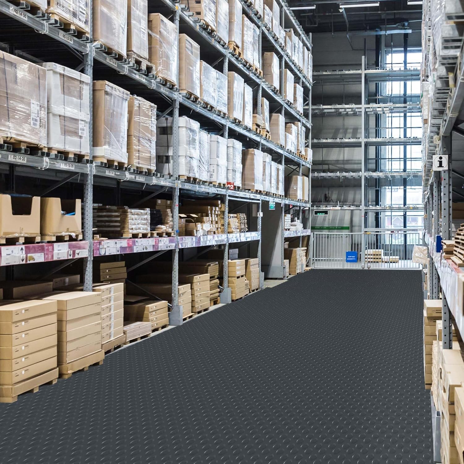 "Features:- Anti-slip Floor Mat Roll - 156""x60"" Floor Mat Roll features round dot pattern for better traction & superb slip resistance, covers concrete or wood sub-floors and hide cracks, ideal for residential garage, parking lot, warehouse, food factory, hospital, stadium, hallway- Safe & Durable Material - Made of PVC, Durable and wear resistant, and can support long-time standing and withstand vehicle-grade loads like trailers, trucks, or SUVs without deforming - Easy to Cut & Install - Available in customizable shape by easy cutting with sharp knife or scissor according to your garage size; Easy to install by just rolling out the floor mat on the surface for a smooth and even display- Easy to Clean - Easy to clean by using vacuum cleaner, broomstick, dry mop to remove crumbs, dust or debris, which saves you time and energy; No dismantling required for effortless maintenance, only step on and clean- Water Resistant - Water resistant floor mat provides excellent protection from dirty water penetration, which makes stains easy to remove for creating a dry and clear environmentSpecifications:- Mat Size(LxW): 156"" x 60"" (396.3 x 152.4 cm)- Overall Thickness with Pattern: 1/16"" (1.6 mm)- Material: PVC- Net Weight: 21.4 Lbs (9.7 kg)Package Contents:- 1x Floor Mat RollNotice: - Patterns of two mats may not match exactly along the seam when they are laid side by side."