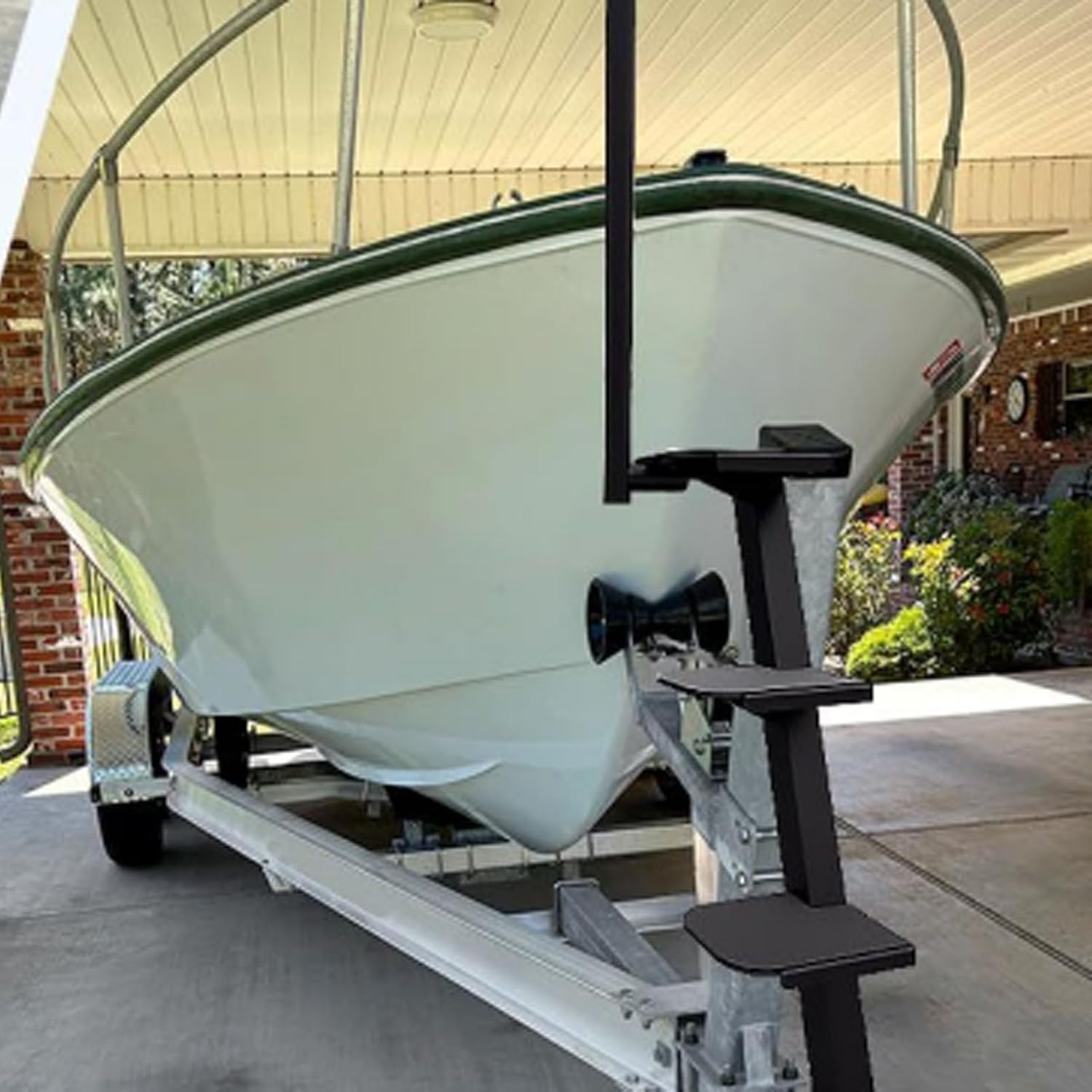 Item Type: Boat Trailer Step Material: Stainless Steel Spray Paint Steps: 3 Application: Suitable for most bass boats and trailers. Size: Step Width: Approx. 8in / 2032cm. Step Length: Approx. 6in / 1524cm. Total Height: Approx. 21in / 5334cm. Package List: 2 x Boat Trailer Steps 6 x 6 x Nuts 6 x Gaskets