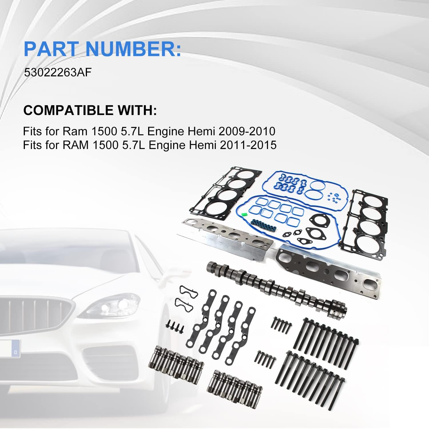 Specification; Part Number: Engine Camshaft: 53022263AF, Engine Lifters: 53021726AE 53021726AD Installation Details: Direct Replacement, Easy to install; Product Condition: New & High-Quality Fitment Auto Models: 🚙 Fits for MDS Hemi Engine 🚙 Fits for Durango 5.7L Engine 2009; 🚙 Fits for Aspen 5.7L Engine V8 2009; 🚙 Fits for Ram 1500 5.7L Engine Hemi 2009-2010; 🚙 Fits for RAM 1500 5.7L Engine Hemi 2011-2015; Package Include; 1x Camshaft & Lifters Product Features; Made of high-quality metal materials; Stable performance, high reliability; High-temperature resistant, long service life; Easy to install, fast response, close to the previous effect; NOTE : Please make sure that the part number written in our link matches the part number of the car you want to replace, or that the part shown in the picture is the same as the car part you need. After confirmation, please feel free to purchase. Our Advantages: We have a professional technical team, provide high-quality products and excellent after-sales service. 7 days / 24 hours online customer service. Our enthusiastic and friendly customer service staff will solve your queries.