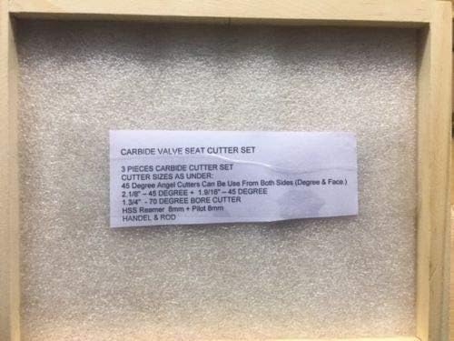 CARBIDE TIPPED VALVE SEAT TOOL CUTTER SET LS2 V8 BIG BLOCK MOTOR COMPLETE KIT SEAT CUTTERS CAN BE USE FROM BOTH SIDES FACE AND DEGREE. CUTTER SIZES AS UNDER: 2.1/8" + 1.9/16" X 45 DEGREE 1.3/4" X 70 DEGREE HSS GUIDE REAMER 8MM VALVE GUIDE PILOT 8MM HANDLES ( DRIVER & ROD) ALL IN FITTED WOODEN BOX FEEL FREE TO ASK ANY QUESTION THANKS FOR LOOKING !
