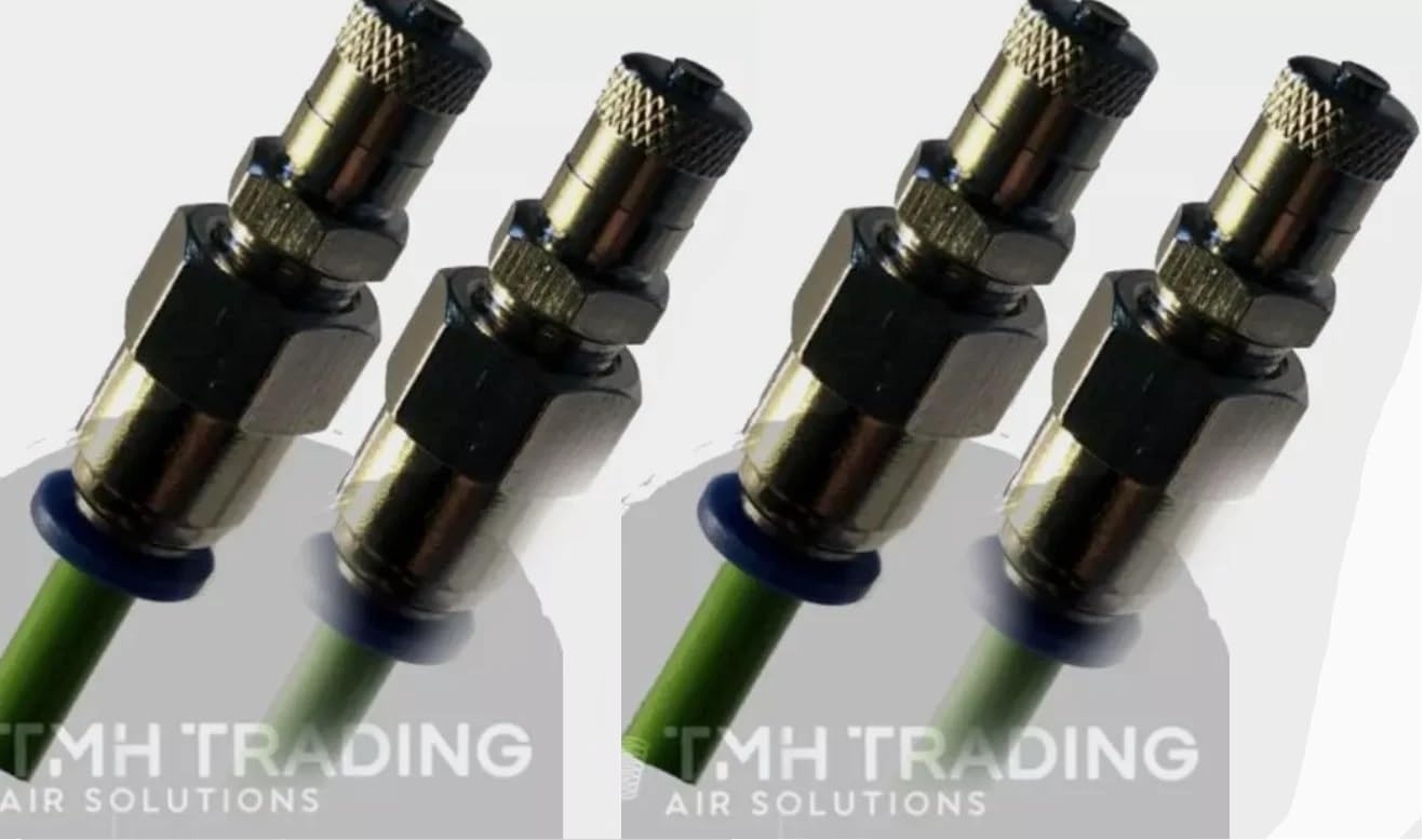 LRNJ MOTORWORKS 4 SCHRADER TIRE VALVES TO 6MM PUSH FIT CONNECTORS - 500 PSI MAXIMUM PRESSURE COMPATIBLE WITH VEHICLES WITH 6MM OUTER DIAMETER AIR LINE, PART # TMH6MM X4. Part # TMH6MM x4. Brand: TMH Air Suspension Solutions. 4 Schrader Tire Valve to 6mm Push Fit Adaptor Universal - 500 PSI Maximum Pressure TMH6MM x4. Air line hoses are Not included! For Models with 6mm Outer Diameter air line Only! TMH Air Suspension Solutions are pleased to offer these British made valves, which can be used on any car with 6mm Outer Diameter air line, whether it's silicone, polyurethane or even nylon hose. While the Schrader valve input is compatible with virtually any air pump/air compressor, the 6mm push fit connector enables you to affix and seal to any 6mm airline. Secure enough to stay in place, or can be easily removed by pulling back on the push fit collar. Once your hose is pushed into the push-lock connector, you can simply use and tire pump/petrol station pump to inflate. ***** These valves are tested up to 500PSI, and will work on any 6mm external diameter air line. Valve dust cap is included. For Models with 6mm Outer Diameter air line Only! Listing for 4 Schrader Tire Valves. Air line hoses are Not included!