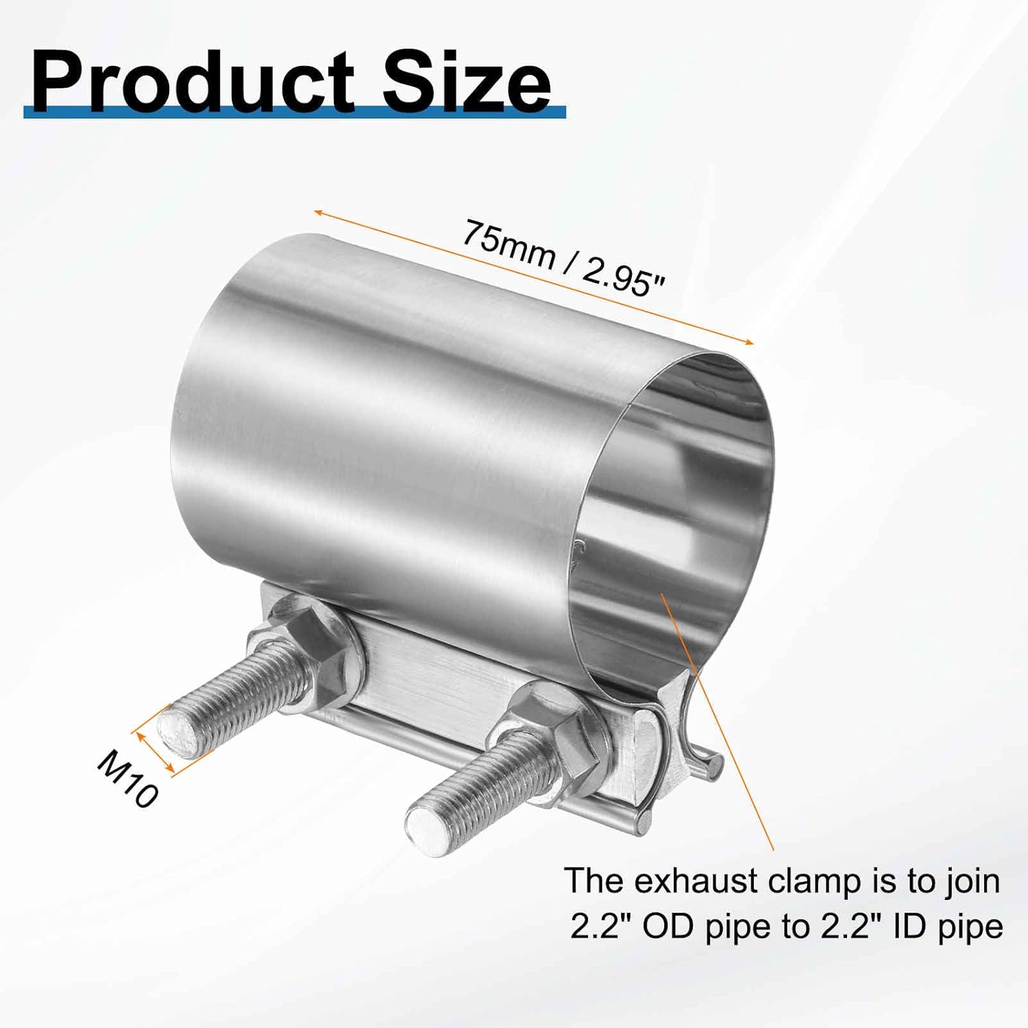 1. The exhaust clamp is made from 401 stainless steel, which provides excellent corrosion and rust resistance against moisture. It features zinc-plated M10 bolts and nuts that enhance the strength of the connection. Additionally, it includes a steel gasket and an aluminum alloy I-block, ensuring stability and durability for applications in various environmental conditions.2. Butt joint band clamps provide a straightforward and efficient solution for connecting exhaust system components like pipes and mufflers. Their unique sealing design and high clamping force ensure a secure fit without distorting exhaust components, allowing for easy disassembly when servicing is needed. This combination of strength and flexibility makes them a good choice for maintaining the exhaust system.3. Suitable for connecting exhaust system components such as pipes and mufflers, a lap joint clamp provides a simple and effective solution in various applications, including automotive exhaust systems, industrial machinery, and HVAC installations.4. Note: Please verify the size, type, and shape of the product images to ensure that the item you need is the correct one.