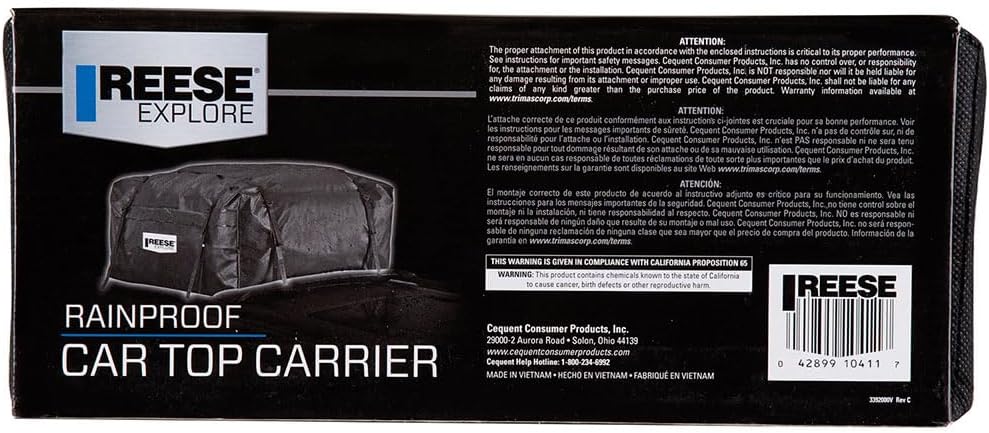 Included Components REESE Explore 1041100 Rainproof Rooftop Hitch Cargo Carrier Bag