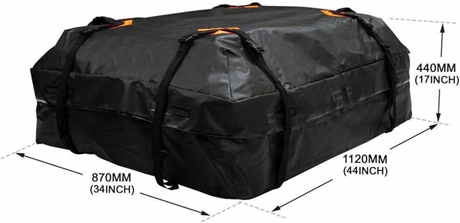 Description:Car Rooftop Carrier is made up of high-quality material, with a large capacity room, and can be installed easily.Features:1. Waterproofing Design: adopts high-frequency welding seam, covert waterproof zipper, and double magic tape zipper flaps.2. High-quality Material: made of high-quality reinforced 420D Oxford cloth-coated mesh, which has a better waterproof effect, thicker lines, and greater tearing force.3. High Storage Room: expandable to 44"L x 34" W x 17"H, providing 14.6 cubic feet of capacity, providing spacious storage space for your large and bulky luggage.Specifications:Name: Car Roof Carrier Bag Material: 420D Oxford ClothSize: Luggage Bag Folded: about 33*27*13cm/13.2*10.8*5.2inLuggage Bag Unfolded: about 112*84*44cm/44.8*33.6*17.6inAnti-slip Mat: about 90*120cm/36*48inColor: BlackWeight: Bag: about 950gPad: about 450gPacking List:1* Car Roof Carrier Bag 1* Slip Mat (Optional)Notes:Due to manual measurements, there may be some errors in product size, please refer to the actual product.Due to lighting effects and angles, there may be chromatic aberration in the product, please understand.