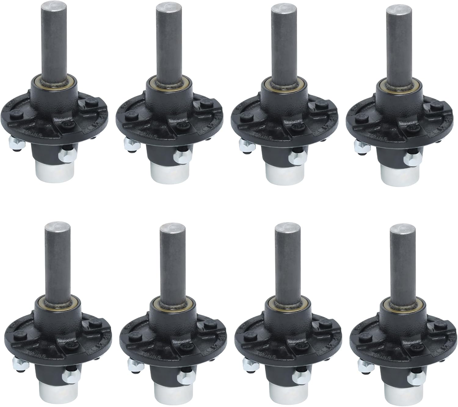 Application:With BT8 spindle, compatible with most manufacturers' standard 2,000 pound trailer axlesWheel stud size: 1/2 inch diameter x 1-5/16 inch long, Grease cap flange diameter: 1.988 inches, BT8 is 8.75" in lengthIncludes:8x 4 on 4" axle seat8x 1" BT8 circular spindle16x L44643/L446108x 12192TB8x rubber plug dust cover32x 1/2"-20 nuts8x cotter pin8x spindle nut and gasketQuality:Made of good quality alloy steel and rubber and plastic, with strong hardness and long service life.NOTE:Please check compatibility and specifications before ordering to avoid buying unsuitable.