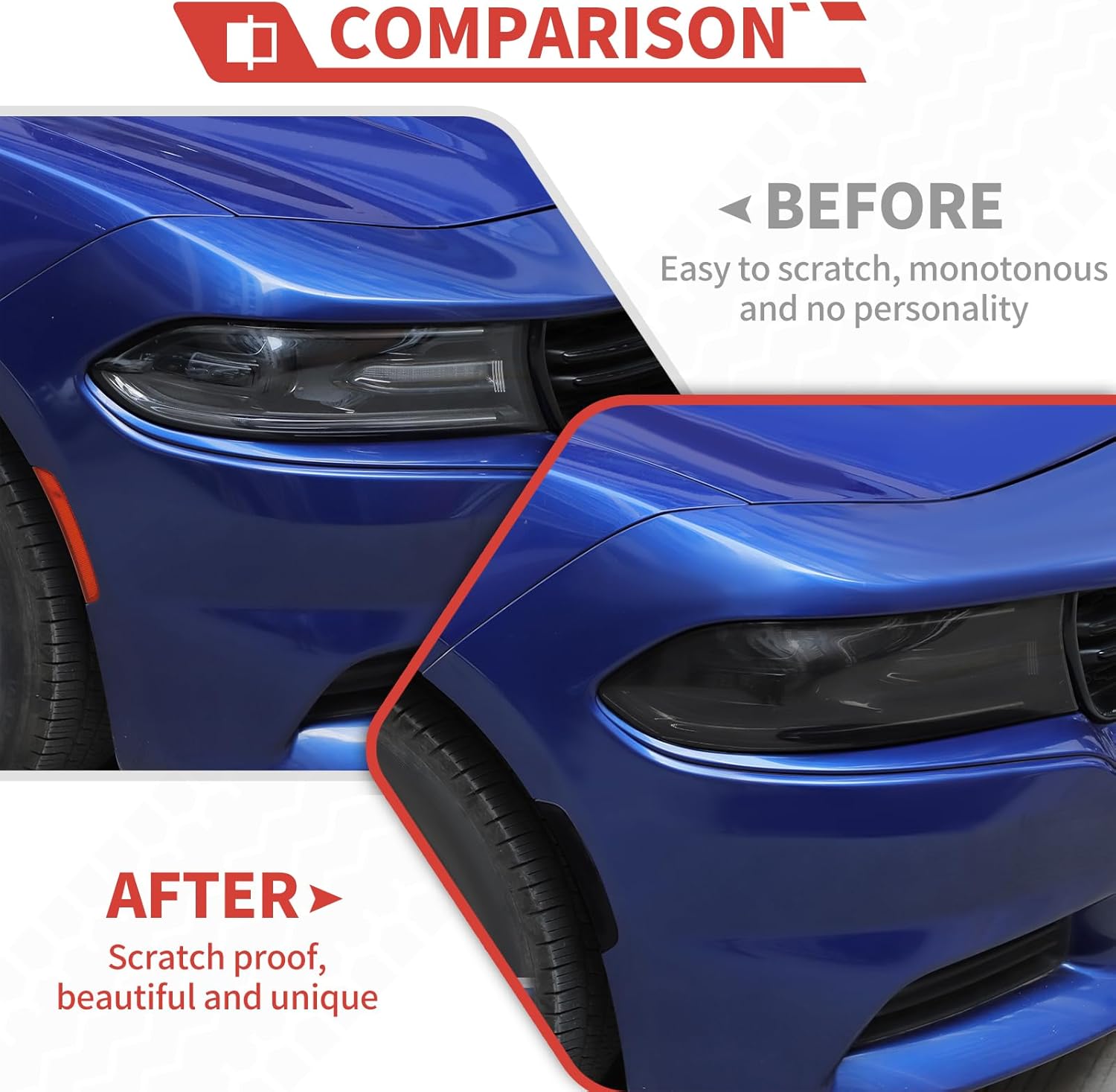 Fitment: -The smoked black tail light cover and front head light overlay and front side wheel eyebrow lamp trim kit exterior accessories fit for Dodge Charger 2015 2016 2017 2018 2019 2020 2021 2022 2023 2024 2025 2026 up. Please compare your car tail light cover and front head lamp cover and front side wheel eyebrow light overlay black kit with our picture before ordering. Features: - Condition: 100% Brand New - Color: Smoked Black - Material: Smoked black rear light cover and front side wheel eyebrow light and front head light overlay protector decoration covers are crafted from high-quality ABS plastic material, does not fade, can perfectly integrate the style and color of the original kit. -Fit for Dodge Charger exterior light trim cover kit accessories are designed with a cool and fashionable appearance, three-dimensional sense, glossy and bright, the curvature can perfectly fit the original cover, enhance the grade of the car, and enhance the sporty atmosphere of your car. - The exterior amayum front side wheel eyebrow lamp and front headlight panel and back rear light trim kit fit for Dodge Charger overlay protector kit can cover existing scratches and prevent your car from scratch and abrasion. Installation Guide: Step1: Please clean the installation place and keep it dry and no dust on. Step2: Make sure you heat both the accessories and the tape on the cover piece. Step3: Tear off the double-sided tape on the back of the tail light cover and front headlight cover and front side wheel eyebrow light panel and paste it to the corresponding position. If you have any questions about installation, please feel free to contact us. Package Include: - Amayum Smoked Black Tail Light Lamp Cover Guard*4 - Amayum Smoked Black Front Head Light Cover *2 - Amayum Smoked Black Side Marker Wheel Eyebrow Light Guards*4