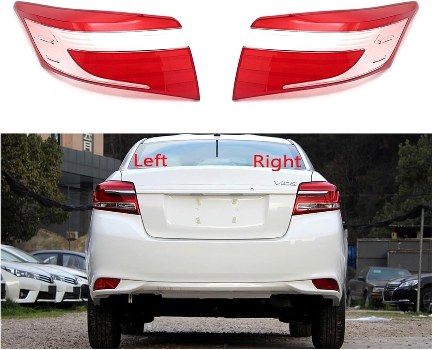 Compatible For Toyota Vios 2017 2018 2019 Car Rear Taillight Shell Brake Lights Shell Replace Auto Rear Shell Cover LampshadeFeatures:1. New2. Replace the rear lights and fit the shell in most aftermarket3. high quality plastic material, environmental protection, light weight, durable4. Transparent shell does not affect light emission5. protect your car rear lights from damage, dust and water6. Made of high quality plastic, coated with anti-uv coating to prevent yellowing or fading7. It's elegant and looks cool8. Easy to disassemble and installSpecifications:Applicable model: Compatible For Toyota Vios 2017 2018 2019Material: polycarbonate(PC) plasticProject name: lamp shadePlaced on the vehicle: left rear, right rearColor: RedHello! Welcome to our auto parts store. All kinds of high-quality auto parts are gathered here, covering many fields such as engine, chassis, body and electronic equipment. We are committed to providing you with the most suitable accessories for your car to ensure your driving experience is more comfortable and safe. Whether you are looking for parts needed for routine maintenance or want to upgrade the performance of your car, we will serve you wholeheartedly. Look forward to providing the best solution for your car!