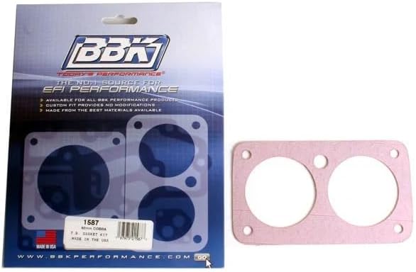 PART #1587 FEATURES: Premium Gasket Material Resists Blow-Out Premium High-Temperature Facing Material Fits BBK Part #1705 or Other Brand Twin 62mm Throttle Bodies VEHICLE FITMENT: 1996-2004 Mustang Cobra 4.6L 4V Quality Replacement Gasket This BBK Premium reinforced graphite Twin 62mm throttle body gasket is designed to give your BBK throttle body equipped 1996-2004 Mustang Cobra 4.6L 4V engine a quality, long lasting, secure seal. Fitment BBK high quality replacement throttle body gaskets are great for replacing damaged gaskets or when taking off the throttle body for any reason. Fits with BBK 1705 and most other brand throttle bodies.