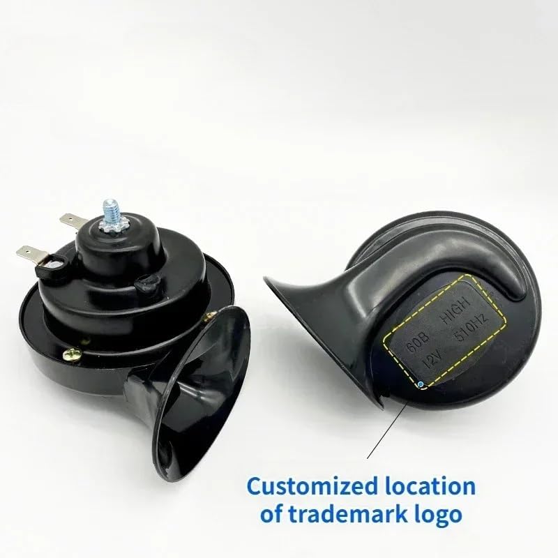 Docking contactsGood thermal conductivity and heat dissipation Enlarge the voice outletStrong explosive power Details highlight qualityEvery car horn is made with great care Installation bracketFirmly installed to reduce resonance Metal materialPiano paint baking process not easy to peel off paint Directly insert the contact footSimple installation with strong conductivity Shell ABS materialUsing ABS materials to withstand high temperatures Enlarged bell mouthHigh and low tone independent frequency division design. Universal model suitable for 90% of models[Voltage]:12V/24V[Sound level]:115db±5db[Low frequency]:410HZ[High frequency]:510HZ 12V voltage horn suitable for car and motorcycle models and Electric vehicle with 12V converter 24V voltage horn is suitable for truck models with 24V voltage Applications : motorcycle modifications, sedans, off-road vehicles,goods trainSound level : 115DB±5DB