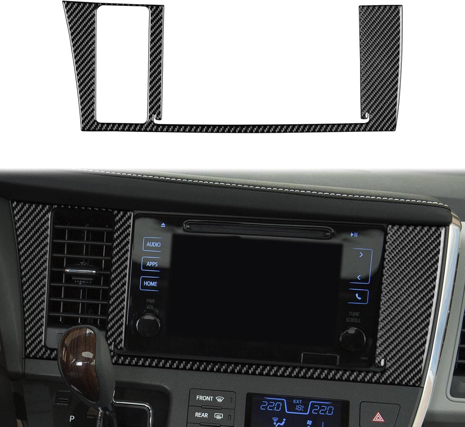 Fit for Toyota Sienna 2015 2016 2017 2018 2019 2020Features Description1.Made of carbon fiber material, which makes the product has other excellent characteristics such as durable and sturdy, which can better decorate your car.2.While decorating your car, it can better protect the original device from scratches and dust.3. The product decoration will bring tension and visual sense to your car.4. Has a great sense of grain lines, and easy to maintain and clean up.5.Simple installation, follow the instructions to install in seconds.1) Clean the surface, keep it dry and clean.2) Paste and install (adhesive can be used to assist installation)3) Press firmly, especially on the edges, for at least 2 minutes after installation.4) Use a hair dryer (hot air blowing) in cold weather.5) Keep away from water and keep dry for 72 hours/3 days after installation.