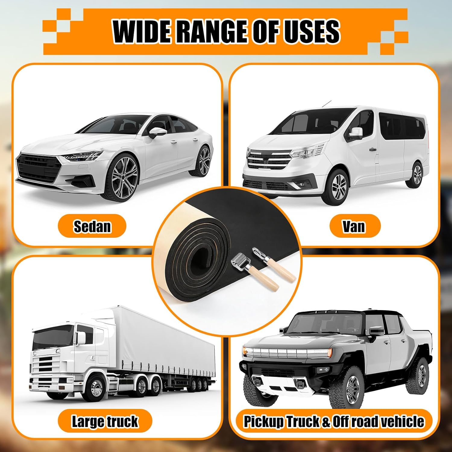Features: Wide Range of Applications: Thickened soundproofing, heat-insulating, and shock-absorbing pads are suitable for trucks, car audio systems, engines, hoods, trunks, roofs, doors, firewalls, luggage compartments, interior and exterior partitions, chassis, seats, and even SUVs and boats. Complete Kit with 2 Rolls: Includes 2 large rolls totaling 43 square feet of coverage, plus a roller for smooth and bubble-free installation. Enough material for multiple vehicle sections or larger vehicles. Specifications: Material: rubber-plastic insulation core, paper, wood Color: silver Size: Car heat shield: about 78.8 x 39.4 x 0.39 inches / 200 cm x 100 cm x 10 mm Package includes: 2 Roll of car sound deadening material Notes: Manual measurement, please allow slight errors on size. The color may exist a slight difference due to different screen displays. Note: do not apply to floors or homes to avoid damaging the paint surface