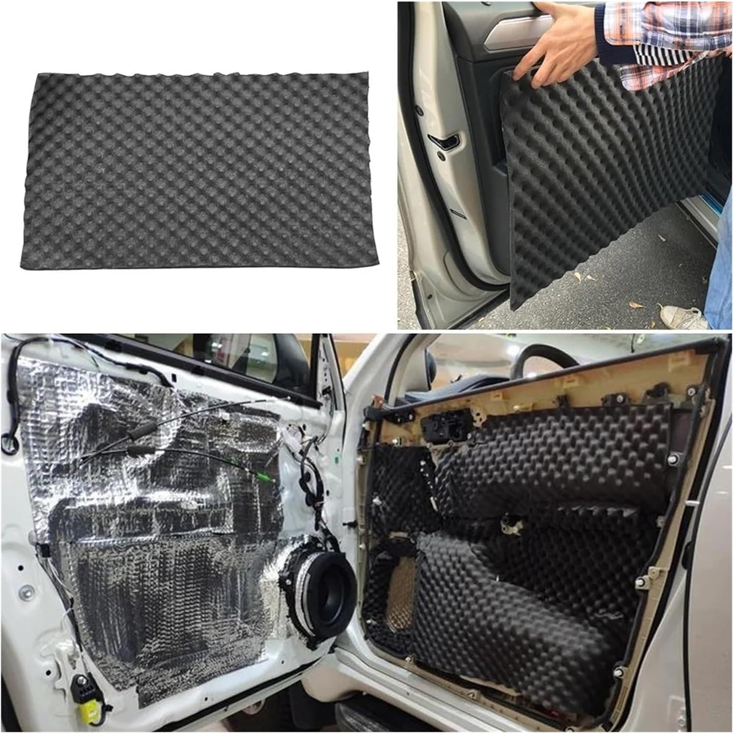 18mm Thick Car Sound Deadening Mat 20x31 inch Automotive Noise Insulation Sound Proofing FoamFeature:1. The wave buffer surface has strong sound absorption and sound insulation effect.2. Used to reduce engine noise, tire squeal, road noise, wind noise, etc.3. back glue, not easy to fall off.4. It can be used in all parts of the car.5. It can be used not only in automobiles, but also in body panels, floors, under seats, floors, KTV of internal bulkheads, walls, etc.Specification:Material: PVC, NBRSize: 18mm/0.71" thick50cm * 80cm/19.7*31.5" (Length x Width)Note:1. There may be slight size deviations due to manual measurement, different measuring methods and tools.2. The picture may not reflect the actual color of the item because of different photographing light, angle and display monitor.1 X Car Sound Deadening MatHello friend, I'm glad you can come to my auto parts store. We have a complete range of products here!
