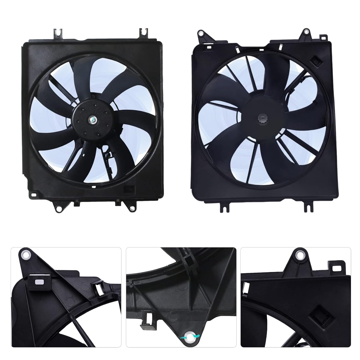 Fits(As a reference) For 2017-2018 2.4L Honda CRVOE/OEM Part Number: 386165PHA01, 386115PHA01Package Included1* Left Cooling Fan1* Right Cooling FanSpecificationsOE/OEM Part Number: 386165PHA01, 386115PHA01Manufacturer Part Number: 386165PHA01, 386115PHA01Interchange Part Number: 386165PHA01, 386115PHA01, 190155PAA01, 190205PHA01, 190305PHA01, HO3113142, HO3115170Applicable Model: 2017-2018 2.4L Honda CRVCondition: NewColor: BlackMaterial of Wind Frame: PP and GF30Material of Wind Blade: PP66 and GF25Cooling Method: FanWay of Use: Direct Replacement Voltage: 12VPlacement on Vehicle: Behind Water TankAssembly Method: ClosedEach Fan Net Weight: 2.85kg/6.28lbsEach Fan Gross Weight: 3kg/6.61lbsEach Fan Package Size: 49*43*13.5cm/19.29*16.93*5.31inchNotes1. We strongly recommend professional installation. Please contact us if you have any questions.