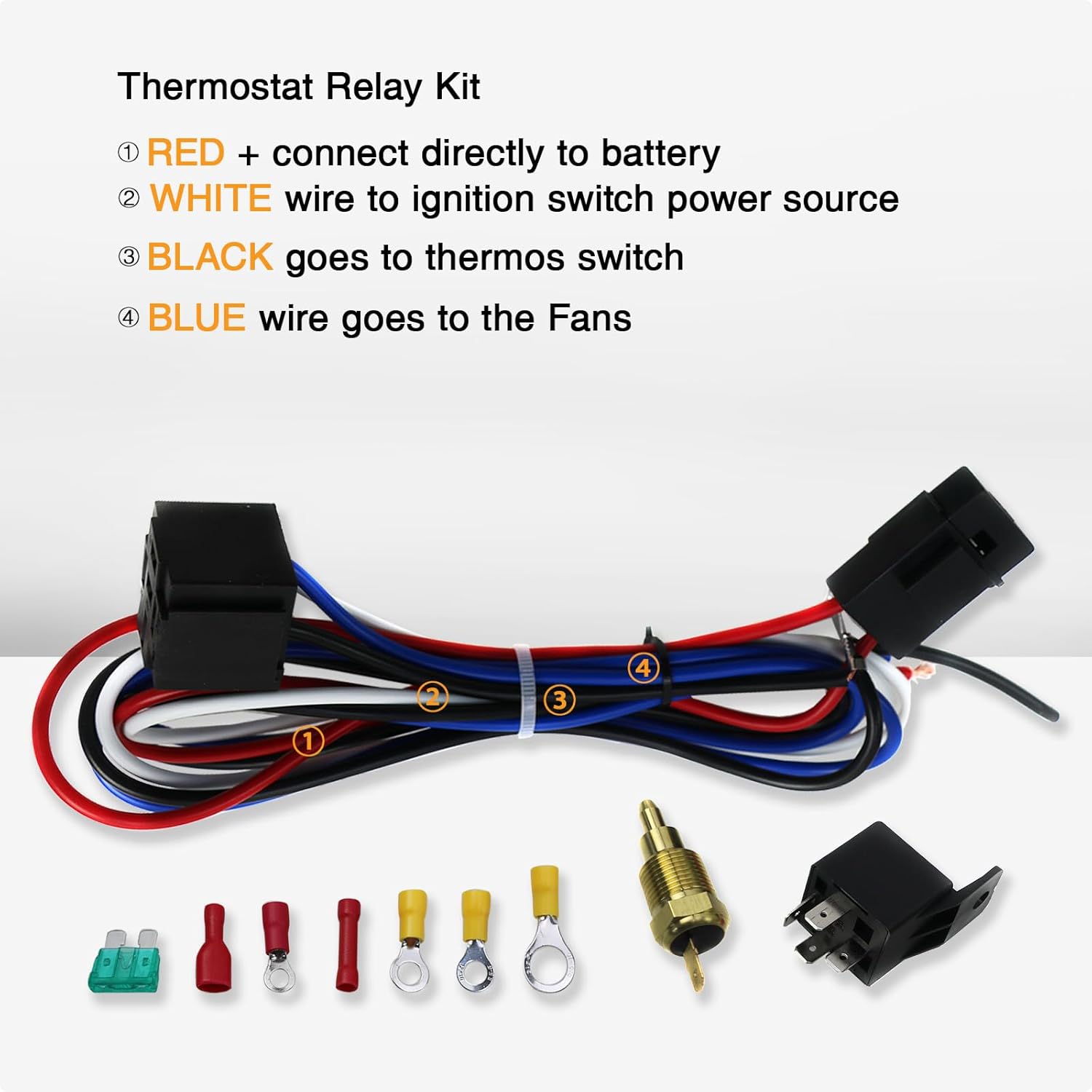 | Included Components | 1 X 16'' Fans (Includes mounting kits), 1 X 3 Row Aluminum Radiator, 1 X Aluminum Shroud, 1 X Radiator Cap, 1 X Thermostat Relay Kit |