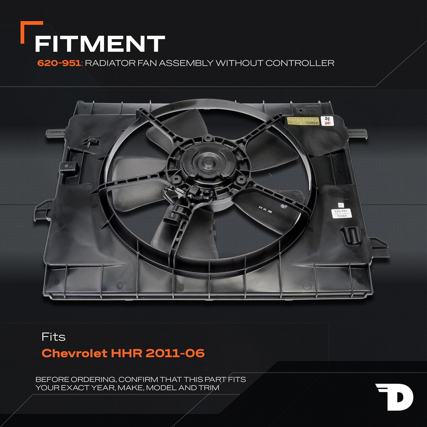 This engine cooling fan assembly is precision-engineered to match the fit and performance of the stock radiator fan on specific vehicle years, makes and models. It has been rigorously tested to ensure it cools as effectively as the original part. This part is compatible with the following vehicles. Before purchasing, enter your vehicle trim in the garage tool to confirm fitment. [Chevrolet HHR: 2006, 2007, 2008, 2009, 2010, 2011]