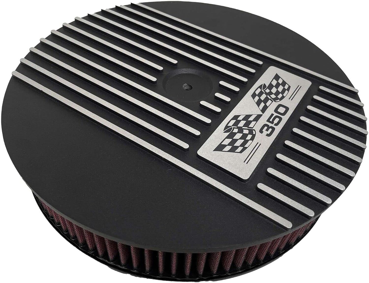 This 14" round lid featues a deep laser engraved 350 Flag Logo. Each air cleaner is individually made to order and built to exact specifications. Fits single carburetor set ups and comes with all necessary hardware to mount. Features a washable air filter element, black base mount and mounting rod.