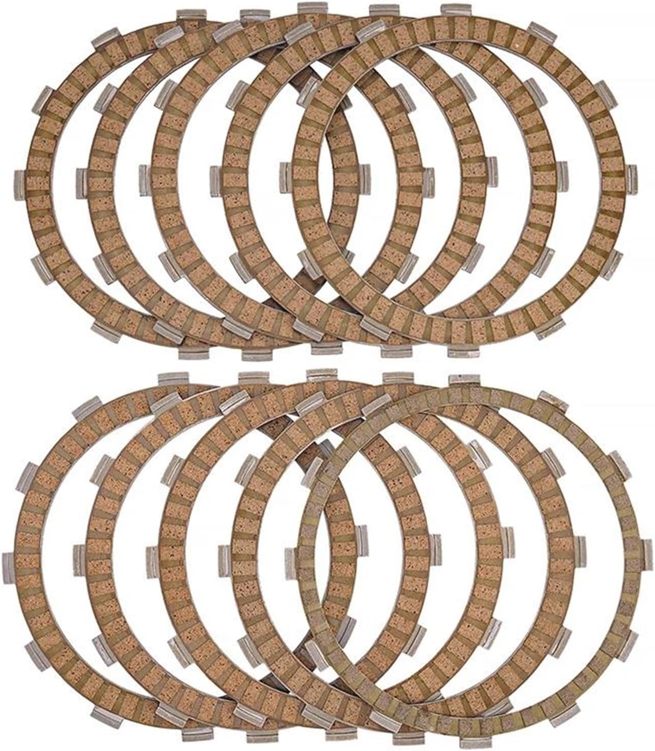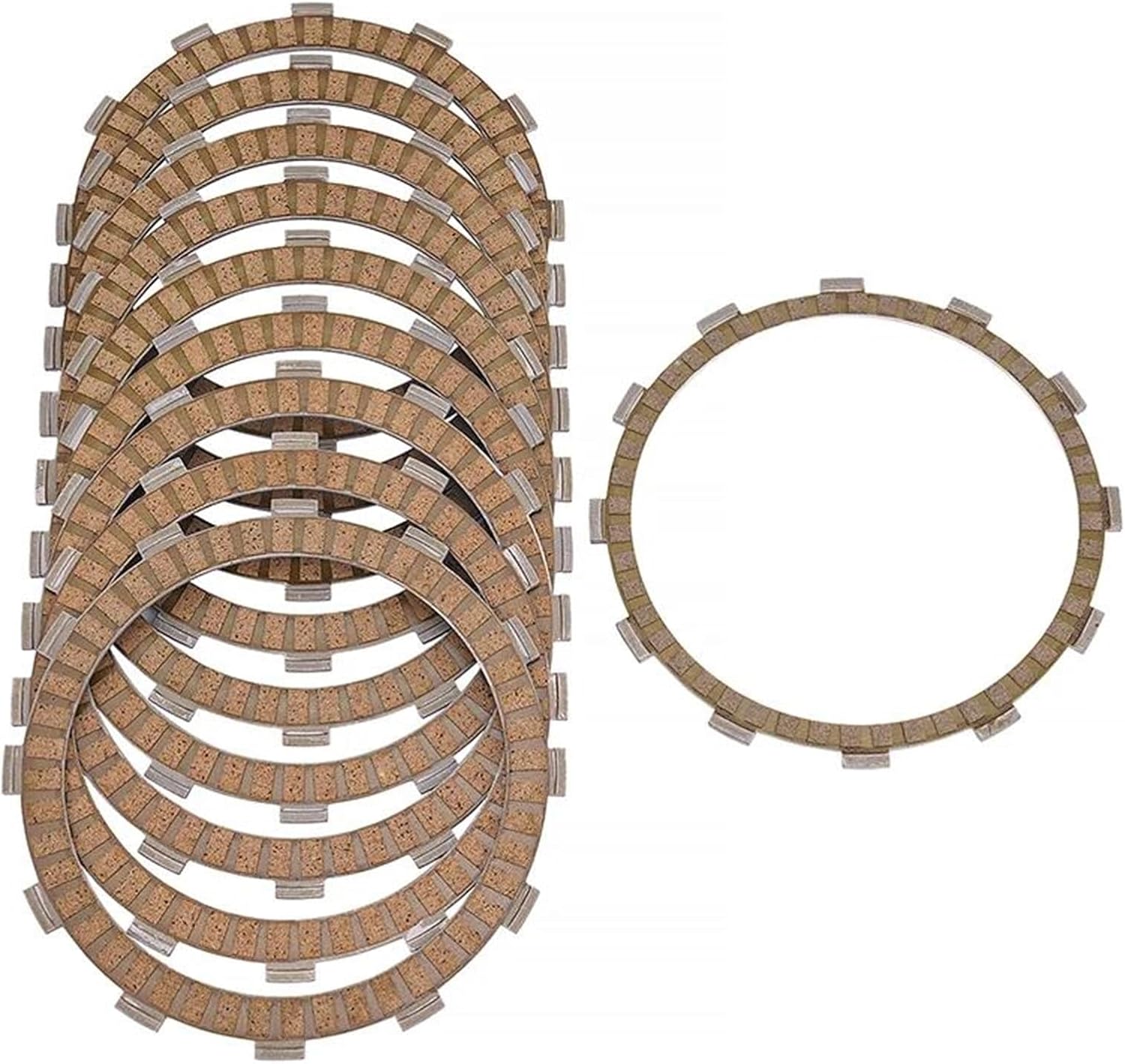 The clutch plate's friction surface design maximizes contact area, ensuring more direct and smooth power transmission.Material:Paper Based Package Including :Clutch Plates-High static and dynamic coefficients of friction for smooth positive engagement and release Can run wet or dry-Durable and not deformed-Ensure long-term use, stable performance, good braking performance and higher driving performanceConvenient, practical, and easy to install.
