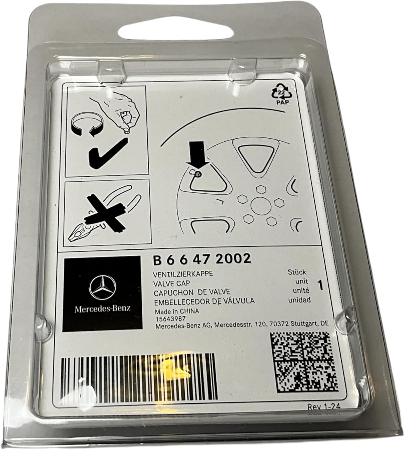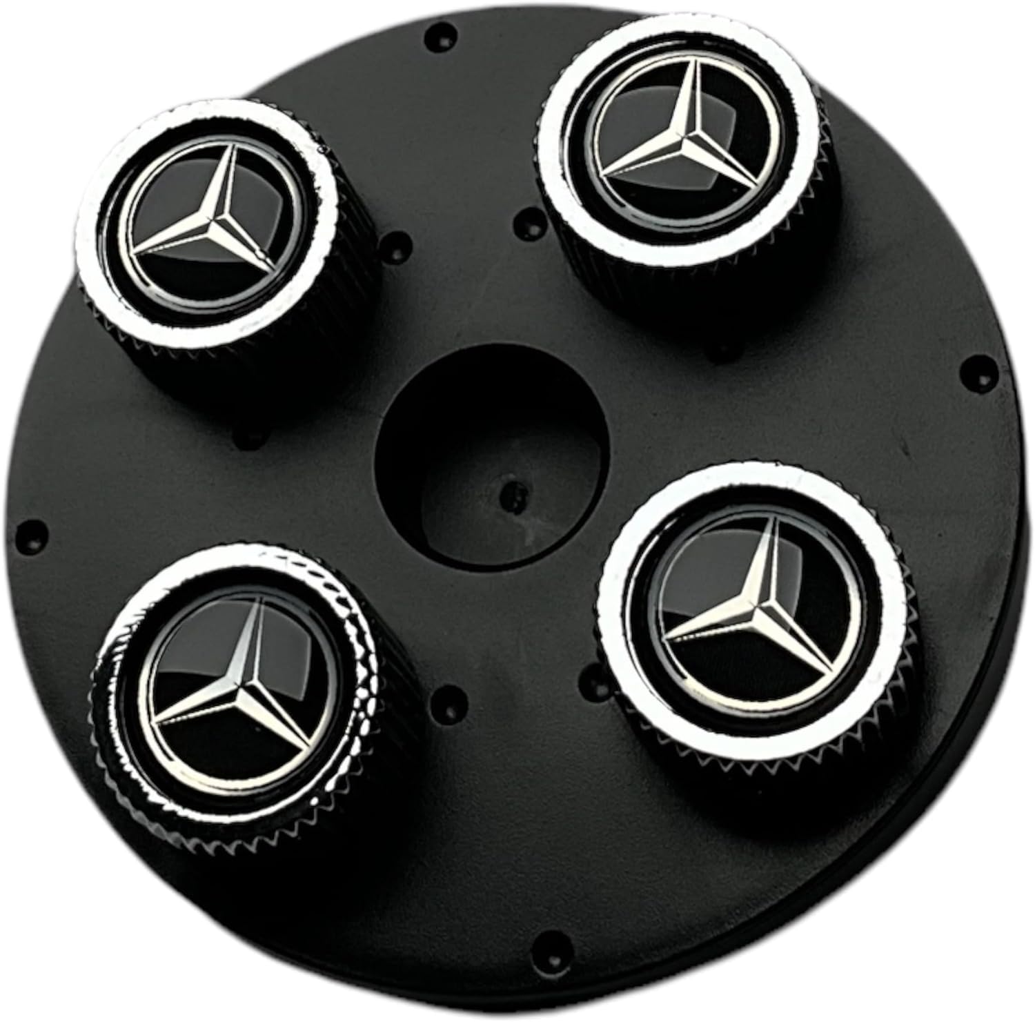 Genuine Mercedes-Benz Decorative caps for valves, chromed. Mercedes-Benz Star logo embossed on front, under transparent plastic. Set of 4 in attractive presentation packaging. Also suitable for tyre pressure monitoring valves.