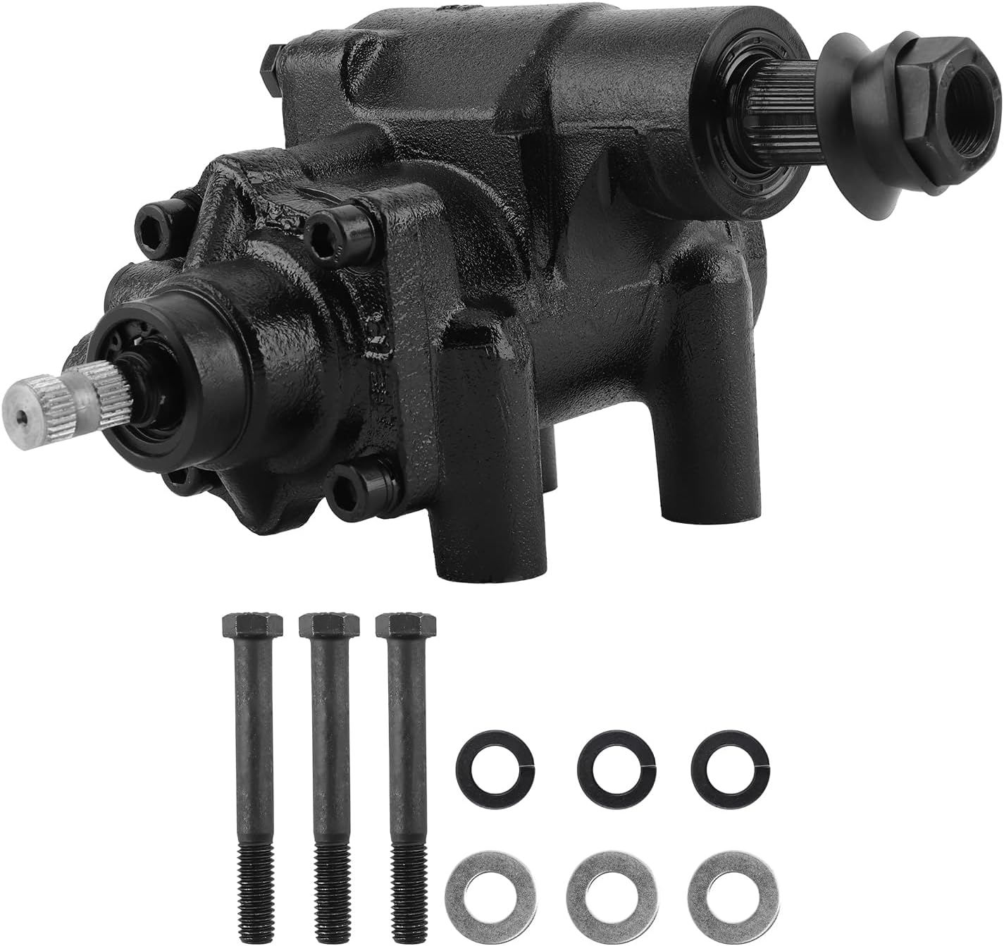 Application:for Chevrolet Bel Air Base 1958-1964 for Chevrolet Bel Air Base Hardtop 2-Door 1958-1962 for Chevrolet Bel Air Base Sedan 2-Door 1958-1964 for Chevrolet Bel Air Base Sedan 4-Door 1958-1964 for Chevrolet Bel Air Base Wagon 4-Door 1958-1964 for Chevrolet Biscayne Base 1958-1964 for Chevrolet Biscayne Fleetmaster 1960 for Chevrolet Brookwood Base 1958-1961 for Chevrolet Impala Base 1958-1964 for Chevrolet Impala Base Convertible 2-Door 1959-1964 for Chevrolet Impala Base Hardtop 2-Door 1959-1964 for Chevrolet Impala Base Hardtop 4-Door 1959-1964 for Chevrolet Impala Base Sedan 4-Door 1959-1964 for Chevrolet Impala Base Wagon 4-Door 1959-1964 for Chevrolet Impala SS 1964 for Chevrolet Nomad Base 1958-1961 for Chevrolet Sedan Delivery Base 1958-1960OE/Part number:CP50003-2, SGB5864Specification:Color:Black / Metallic Input Shaft Diameter (IN): 0.72 Input Shaft Diameter (MM): 18.3 Number of Mounting Holes:3 Output Shaft Diameter (IN):1.137 Output Shaft Diameter (MM):28.9 Pressure Port ID Size:0 Pressure Port Thread Size:M18X1.5 Return Port ID Size:0 Return Port Thread Size:M16X1.5 Total Turns Lock To Lock:4.15Note:Professional installation is highly recommended. Please double confim the compatibility as well as the OEM number before purchasing