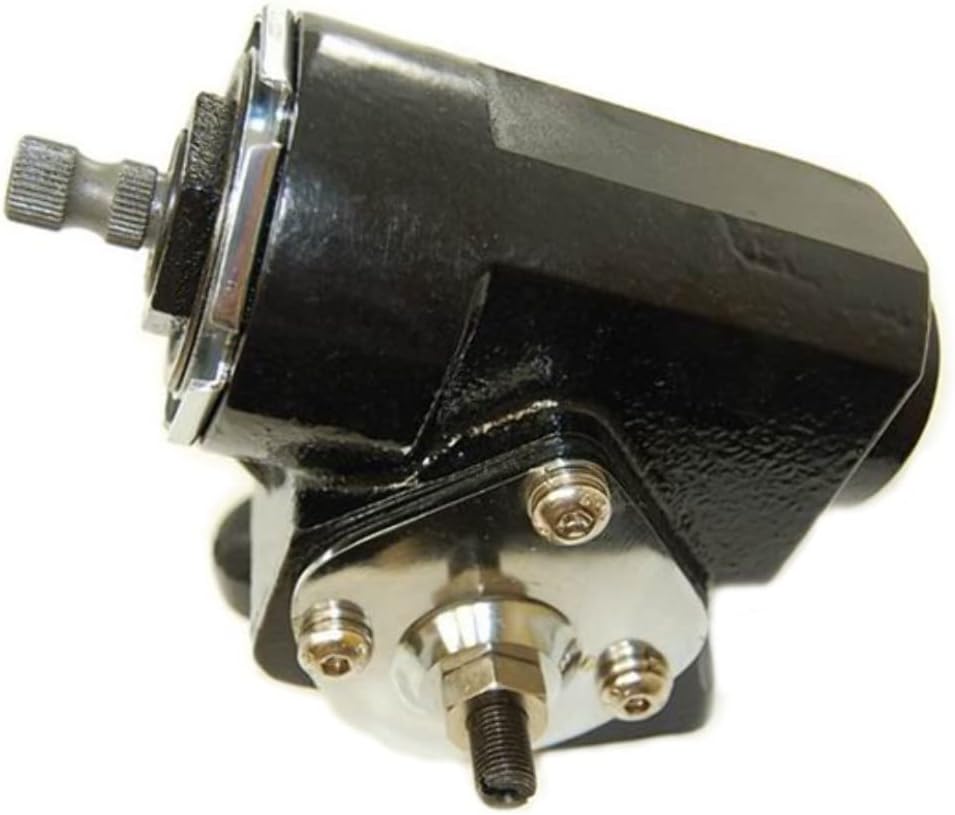 Corvair Style Steering Box (Reversed) Fits: 1960-1969 Chevy Corvair This brand new Reversed Corvair Style Steering Box is designed for use on traditional steering cars and T-Buckets. The mounting hole closest to the input shaft to hole closest to the output shaft is 2-15/16". Hole closest to the input shaft to the hole opposite of the output shaft is 3-3/4". These can be used with both the stock Corvair Pitman Arm or an aftermarket Pitman Arm. Black 3/4" DD X 5/8-36 Spline U-Joint Included!This is a brand new universal single steering U-Joint. This Joint Is 3/4" DD X 5/8-36 Spline and is oxidized black for corrosion resistance. These are forged alloy steel yokes and U-Joint. These U-Joints also feature needle bearings for smooth action. Lasts ten times longer than stock. These work great in almost any traditional street rod, hot rod, rat rod and more. Finish is black powder coat with chrome caps. Also available in chrome. Details: Input Shaft: 5/8" (dia), 1.04" (length), 36 spline Output Shaft: 0.86" (dia), 1.15" (length) Overall: 7.00" (length) x 5-1/2" (height) Steering Ratio: 20:1 3 Bolt Mounting FlangeBlack 3/4" DD X 5/8-36 Spline U-Joint Included