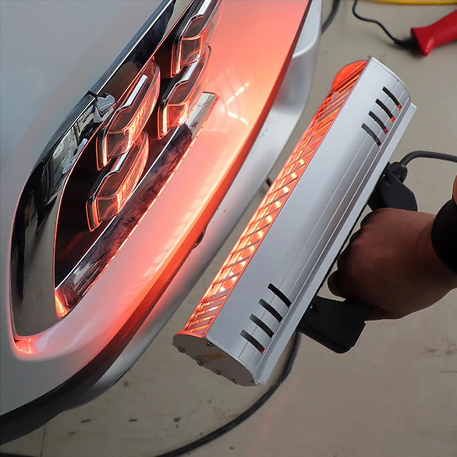 Describe:1. Using infrared lamps, which can quickly heat up and improve efficiency.2. This curing lamp can heat locally, has high thermal efficiency and saves energy.3. Provides good ity and quick drying, lightweight and versatile4. Specifications allow you to reach hard-to-reach areas while on the move.5. Suitable for preheating panels, curing fillers, primers and undercoats, etc.6. The temperature is easy to control, the heating process is clean, and there is no hot air and secondary pollution.Specification:Material: alloy, plasticPower: 1000WVolta: 220VCable: about 2.2 metersFunction: Light wave infrared heating